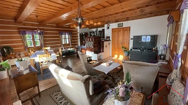 V přímém pověření majitelky nabízíme k prodeji roubenou chalupu – rodinný dům kolaudovaný v r. 2013. Dům je v perfektním stavu má celkovou plochu 185m2 s velkou plochou pro parkování - 6 vozů a velkou zahradou 3 000m2 s ovocnými. stromy a krytým bazénem.