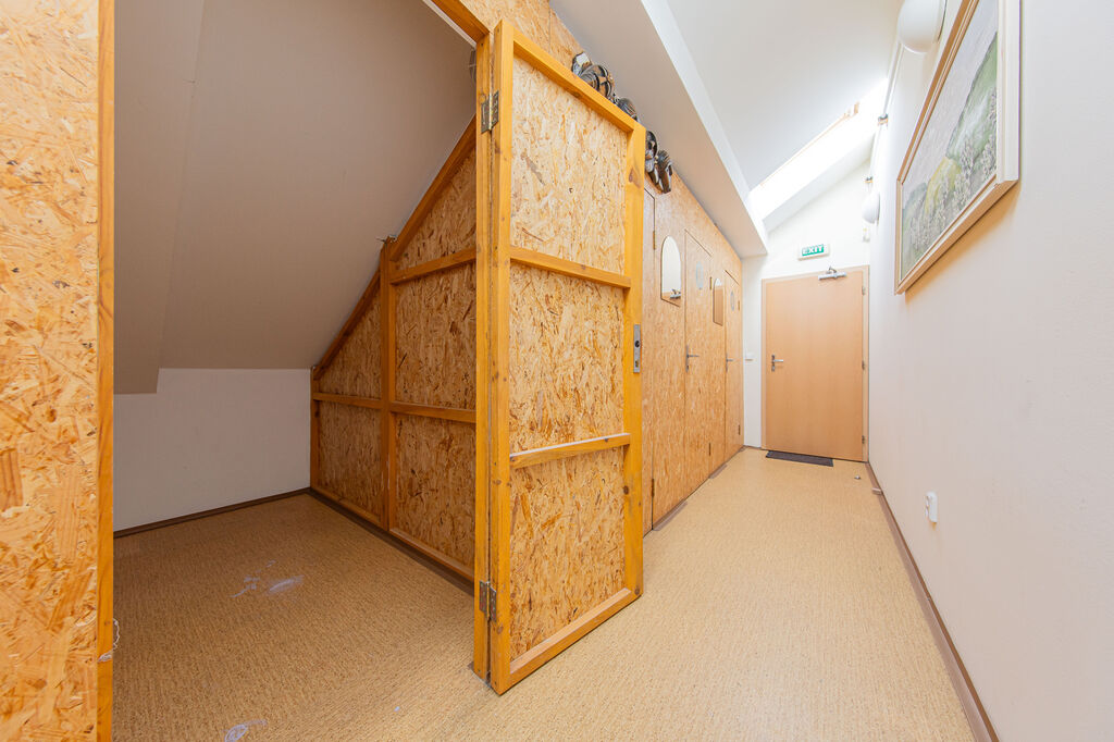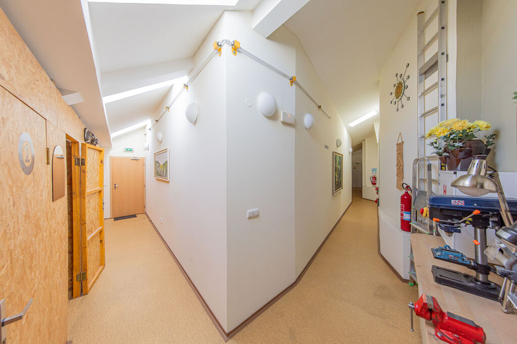Půdní prostory domu jsou zrekonstruované jako užitkové prostory. Ke každému bytu tak na půdě najdeme uzamykatelnou kóji, společnou sušárnu na prádlo a také malou dílnu, která stačí na vyřešení běžných úkolů spojených s údržbou bytu.