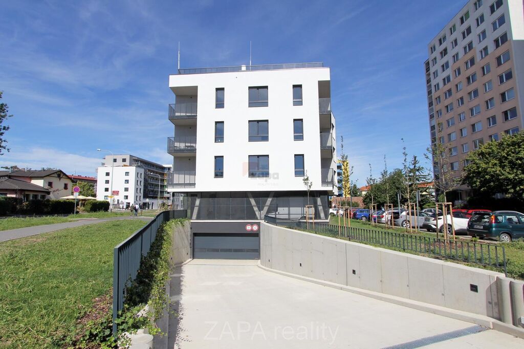 Parkovací stání v suterénu budovy je přístupné přes dálkově ovládaná vrata.
