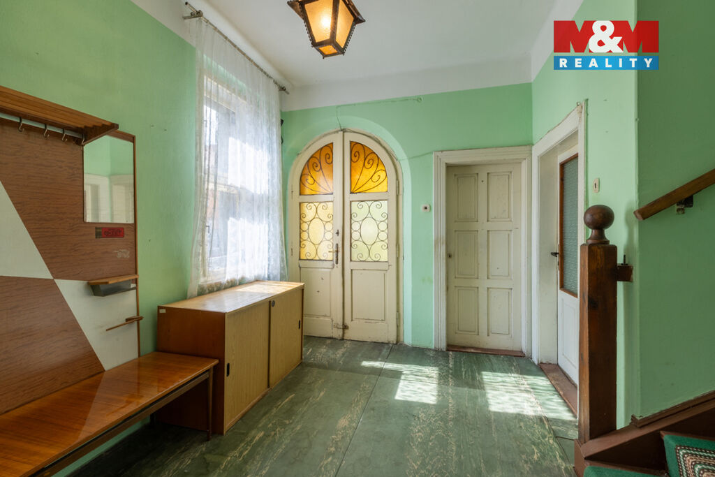 Pokud hledáte dům s duší, jeden nádherný z roku 1930 pro vás mám! Rovnou v nejkrásnější části města Postoloprty. V přízemí domu naleznete kuchyňku s velkou spíží, z chodby vstup na terasu směrem do zahrady a také vstup do sklepů, kde je nádherný chládek a daří se v něm nejen potravinám, ale i vínu, koupelnu, obývací pokoj s jídelnou, samostatné wc, krásnou vchodovou halu ze které je vstup na balkon a ze které vedou schody do dalšího patra. Vstup do patra může vést rovnou na další balkón nebo do veliké kuchyně ze které je vstup na půdu, kde by do budoucna mohla být např. další koupelna a sloužit tak k samostatnému patru a tím i vícegeneračnímu bydlení. Dále je v patře jedna velká místnost, která byla dříve přepažena, aby mohla sloužit jako ložnice i obývací pokoj. Z tohoto velkého pokoje je vstup na další balkón. Na okrasné zahradě je dostatek prostoru pro zahradničení i relaxaci a prostorná garáž. Pro prohlídku volejte 7 dní v týdnu.