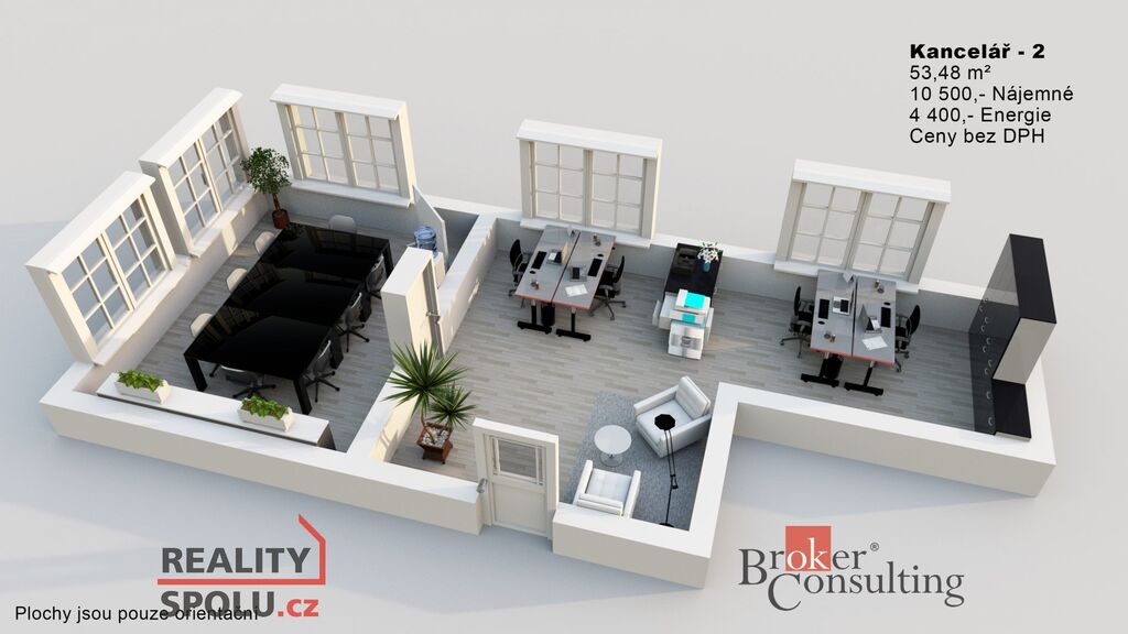 Cena pronájmu je 4 400 Kč + DPH a náklady na energie a služby jsou 2200 Kč + DPH. Provize realitní kanceláři je jeden nájem + DPH.