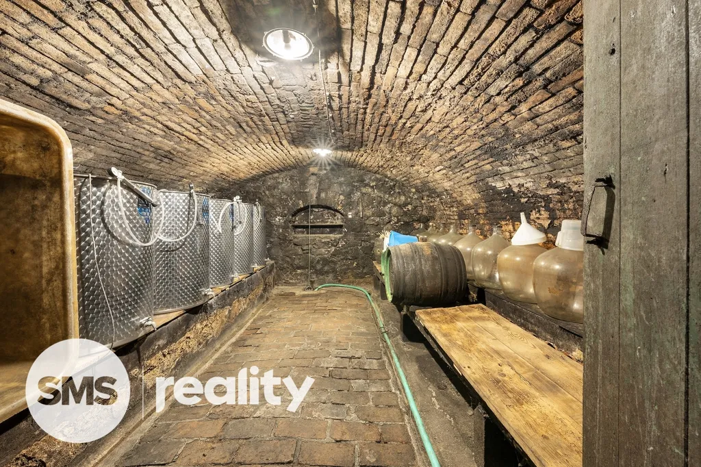 Součástí prodeje je také samostatně stojící historický vinný sklep s lisovnou o zastavěné ploše 126 m², vhodný k využití pro výrobu i skladování vína nebo ke komerčnímu využití.
