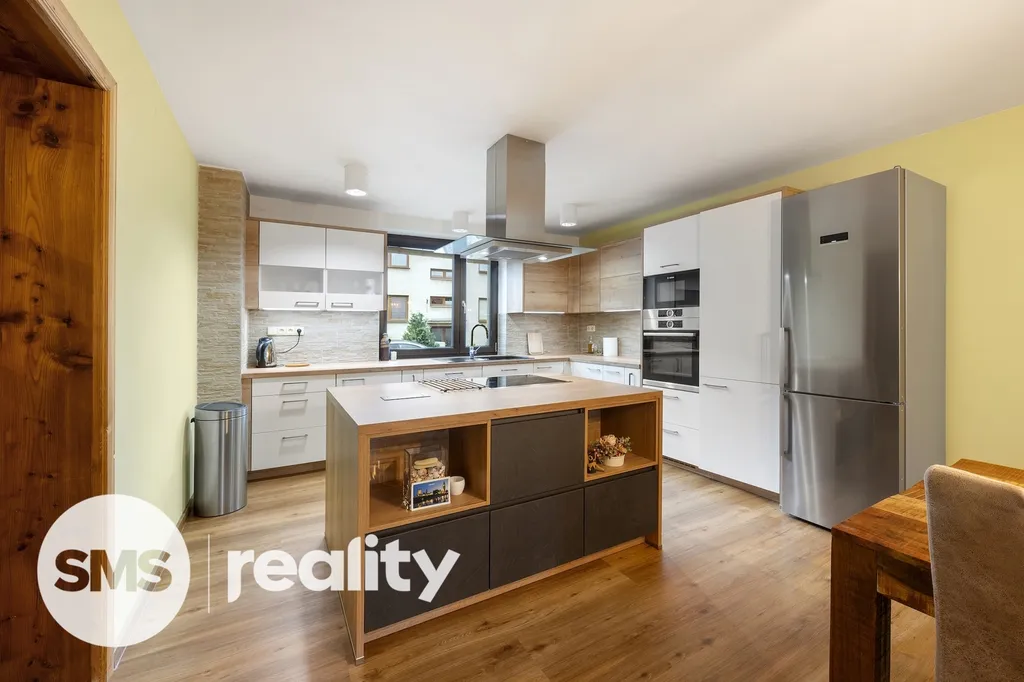 1. NP: vstupní zádveří, hala, obývací pokoj s kuchyňským koutem včetně značkových spotřebičů BOSCH, tři samostatné pokoje a nová luxusní koupelna s toaletou a sprchovým koutem typu walk-in.