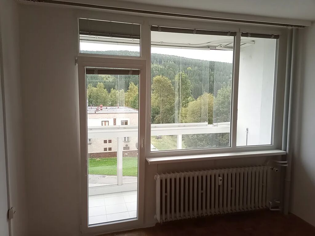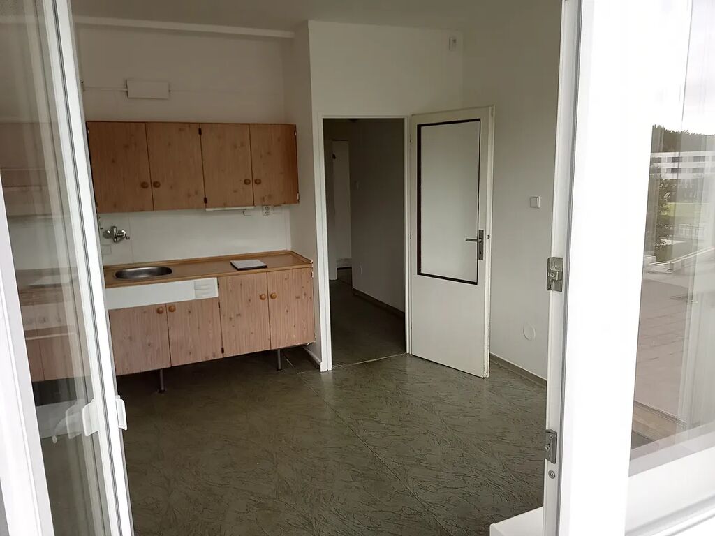 Jedná se tak o velmi prostorný byt 1+1 s širokou vstupní šatnou i chodbou před soc.zařízením. Obývací pokoj i kuchyň mají samostatnou zasklenou lodžii s výhledem do krajiny. Byt se skládá ze vstupní chodby (šatny) se vstupem nalevo do samostatné místnosti bez oken s možností využití jako sklad či pracovna, proti vstupu je umístěný obývací pokoj s průchodem do kuchyně propojenou přes chodbu se šatnou do vstupní části. Z této chodby je vstup do koupelny s WC po rekonstrukci včetně ker.obkladů a rozvody instalací i do kuchyně. Na chodbě u výtahů je společná komora pro další tři byty na patře a v suterénu je samostatná sklepní kóje. Objekt domu je dvanáctipodlažní s bezbariérovým vstupem do přízemí a samostatným vstupem do suterénu přes bet.rampu u parkoviště pod domem s navazujícími dvěma samostatnými výtahovými šachtami. Celý dům prošel rekonstrukcí s novým zateplením kontaktní fasádou, výměnou všech oken za plastové s izolačním sklem, nové rozvody ovládání vstupních dveří včetně zvonků, novými výtahy, kamerovým systémem zabezpečení domu… .