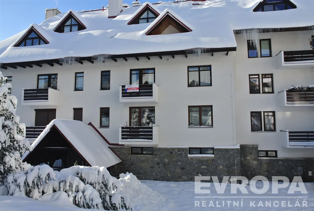 Exkluzivně nabízím k prodeji byt 1+kk v osobním vlastnictví o rozloze 34 m2 v Harrachově, části nazývané Klondajk. Byt se nachází ve třetím podlaží, resp. druhém patře bytového domu. Byt je vybaven kuchyňskou linkou, jídelním stolem se židlemi, sedací soupravou, televizorem a sklápěcím dvoulůžkem, vestavěnou skříní. Sociální zařízení tvoří standartně WC, umyvadlo a sprchovým kout. Topení a ohřev TUV je plynovým kotlem. Byt má balkón s výhledem do parčíku mezi domy. K bytu patří sklepní kóje. Parkování u domu. 100 m od domu se u hypermarketu Norma napojíte na silnici vedoucí do Polska, kde najdete také širokou nabídku obchodů, tržišť a také možností sportovního vyžití.