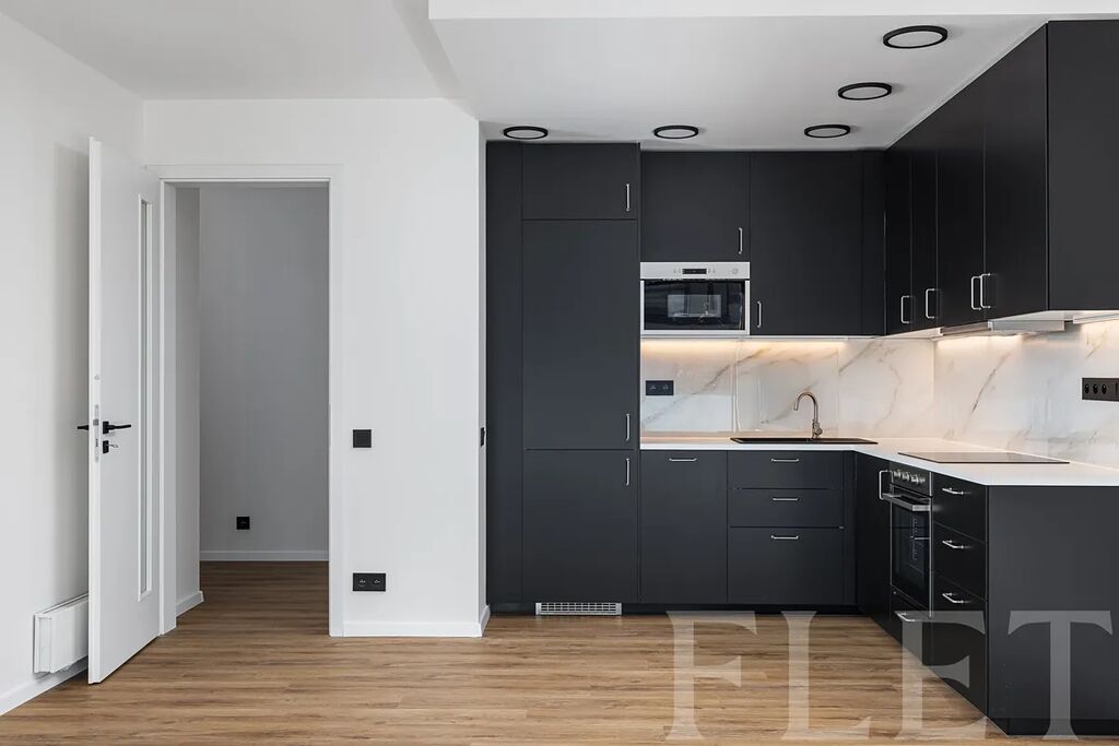Samotný byt 2+kk po kompletní rekonstrukci působí svěže a nadčasově. Otevřený obytný prostor s designovou kuchyní v neotřelém barevném provedení působí velmi elegantně a navazuje na balkon s výhledem do klidného vnitrobloku, kde můžete nerušeně relaxovat. Ložnice i koupelna jsou laděny do luxusních materiálů a tónů, které podtrhují moderní charakter celého bytu. Samozřejmostí je sklep a garážové stání přímo v budově. Pokud garážové stání nevyužijete, je možné byt pronajmout bez něj.