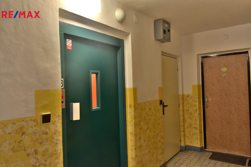 Byt 1+kk, 30 m2 se nachází v 8.NP/ze 12.NP, součástí bytu je komora, která je umístěna ve spojovací chodbě na patře bytu. K užívání jsou 2 výtahy.