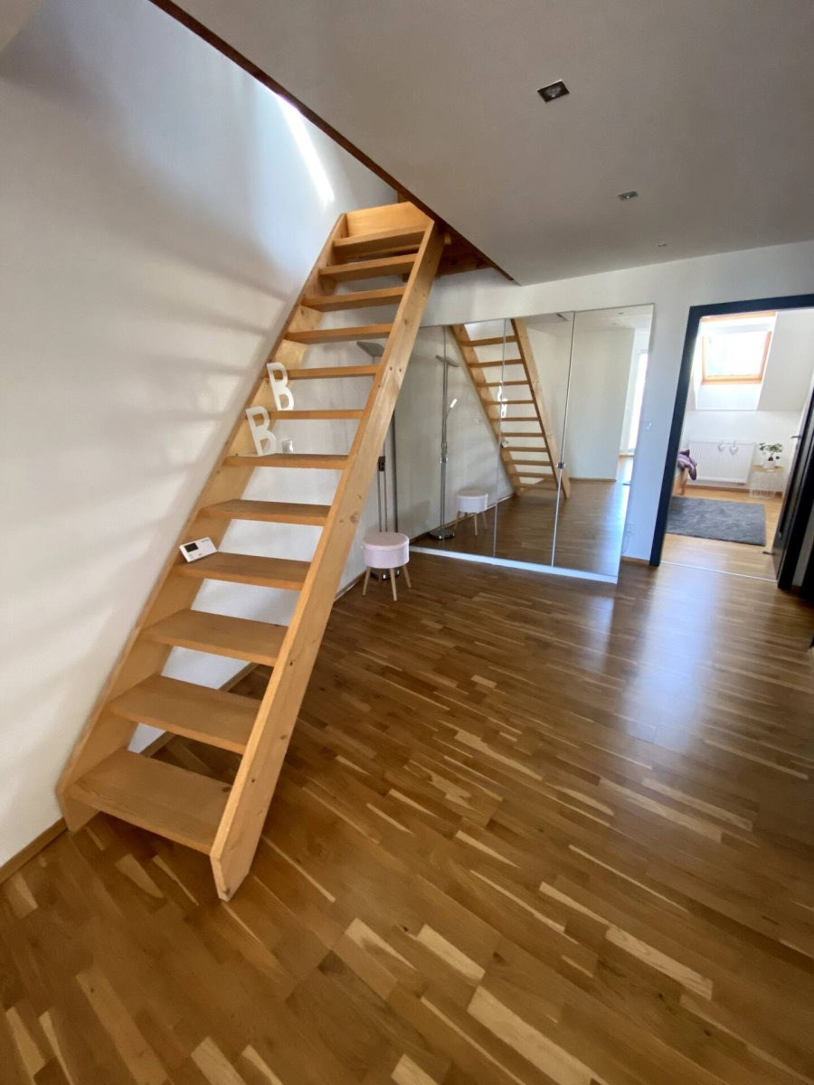 Byt o celkové výměře 89 m² se nachází v 5. patře historického domu bez výtahu. K bytu dále náleží balkón, parkovací stání a také cca 40 m² půdy pod střechou s výškou přibližně 1,7 m, která může sloužit jako praktický úložný prostor.
