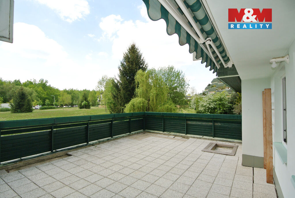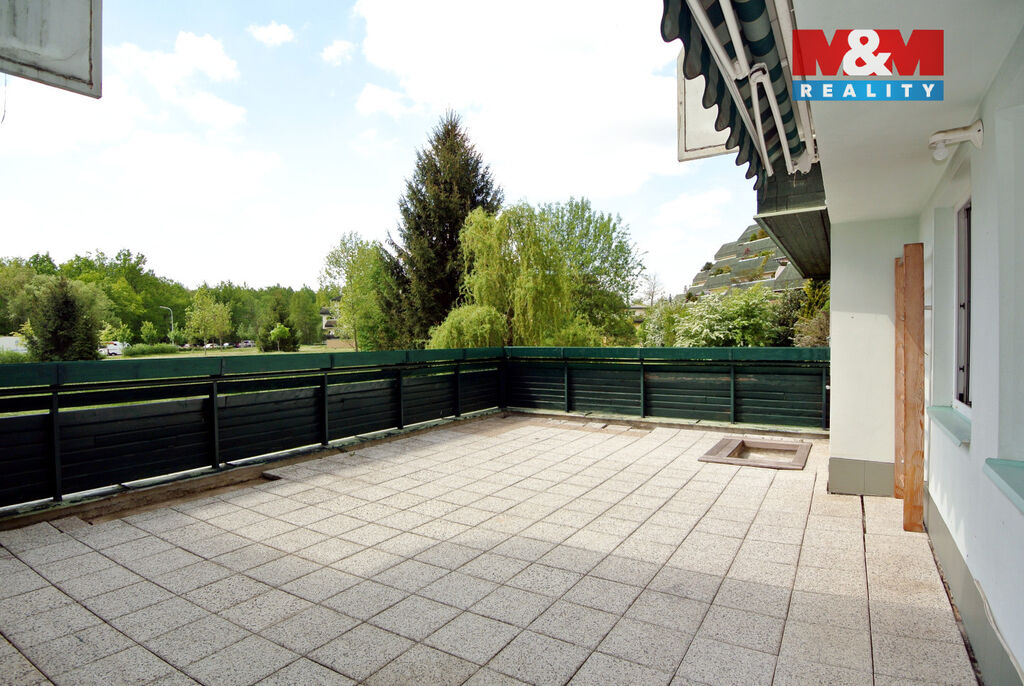 Byt se skládá ze vstupní haly, ze které se vchází do tří samostatných neprůchozích pokojů a dále do prostorného obývacího pokoje s kuchyňským koutem a vstupem na terasu. Z prostorného obývacího pokoje je přístup do čtvrtého neprůchozího pokoje. Byt má dvě koupelny, z nichž jedna je vybavena sprchovým koutem, umyvadlem a toaletou.
