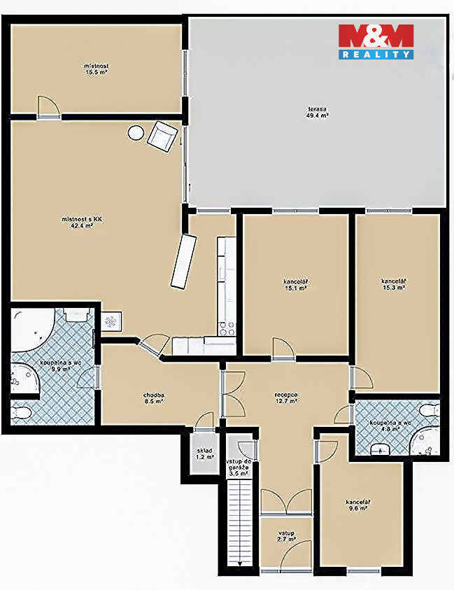 Díky samostatnému vchodu lze v nemovitosti mít i prostor pro podnikání jako masážní salon, advokátní kancelář a podobně.