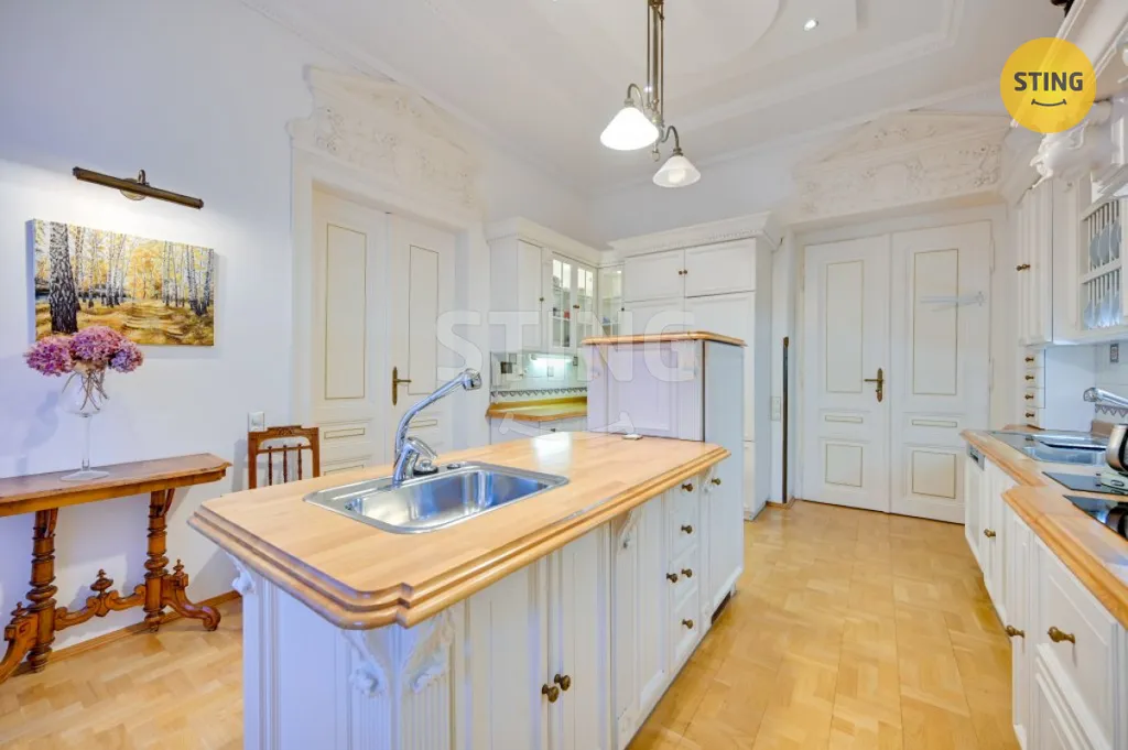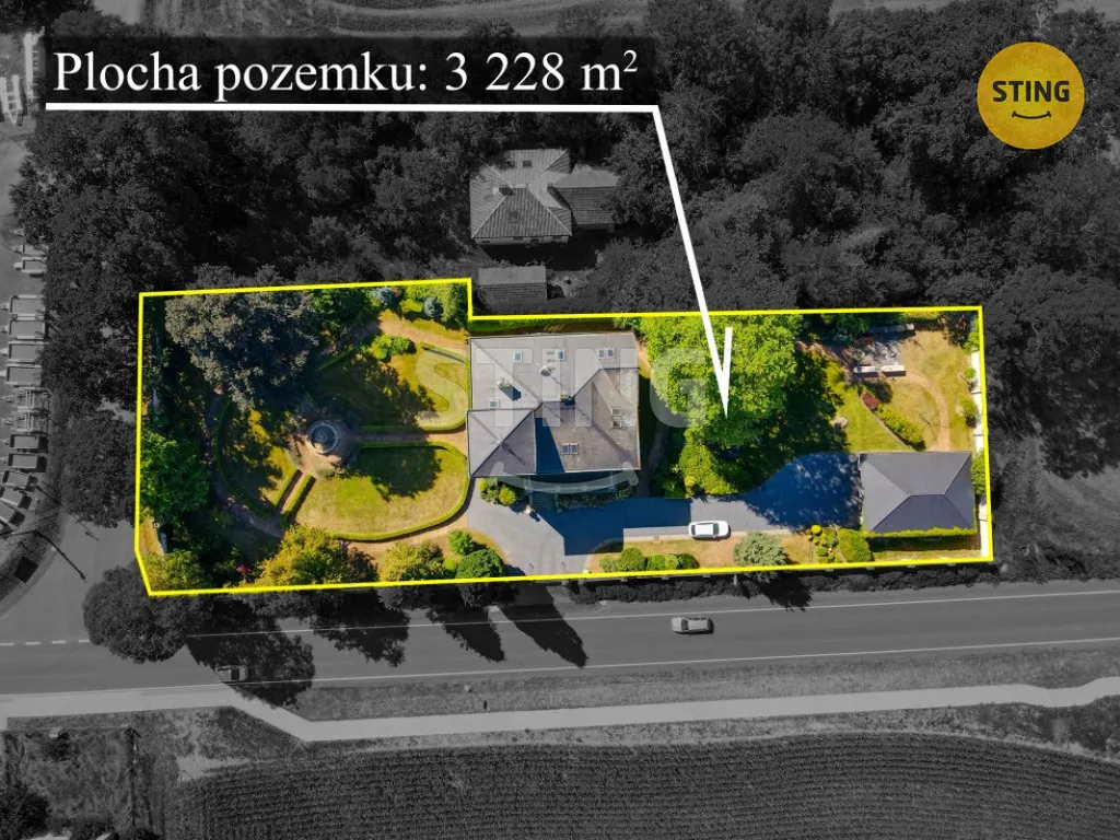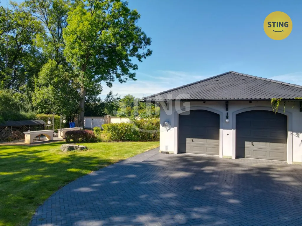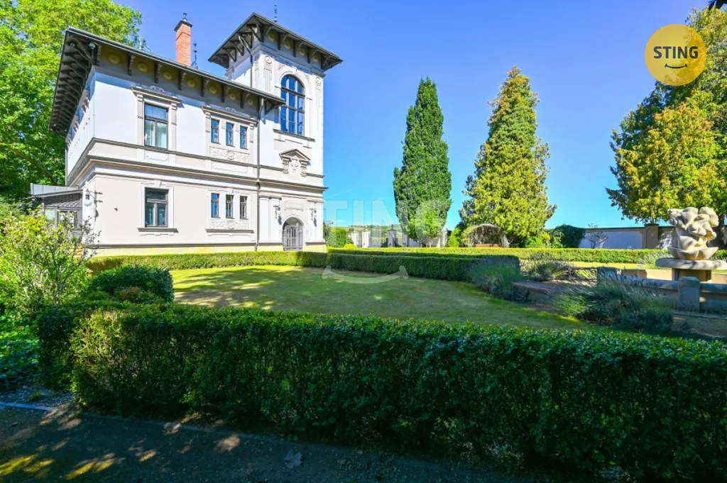 Rozlehlá zahrada (2 799 m²) s kašnou, vzrostlými stromy a romantickými zákoutími připomíná zámecký park. Večerní osvětlení dodává vile zvláštní kouzlo a atmosféru. Vysoký plot zajišťuje absolutní soukromí a klid.