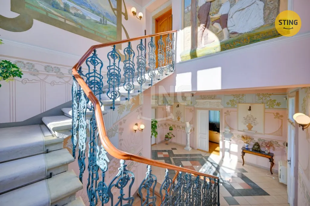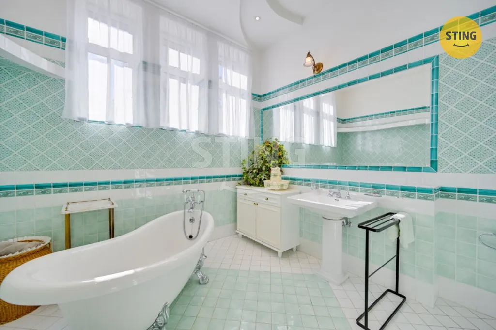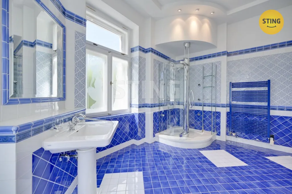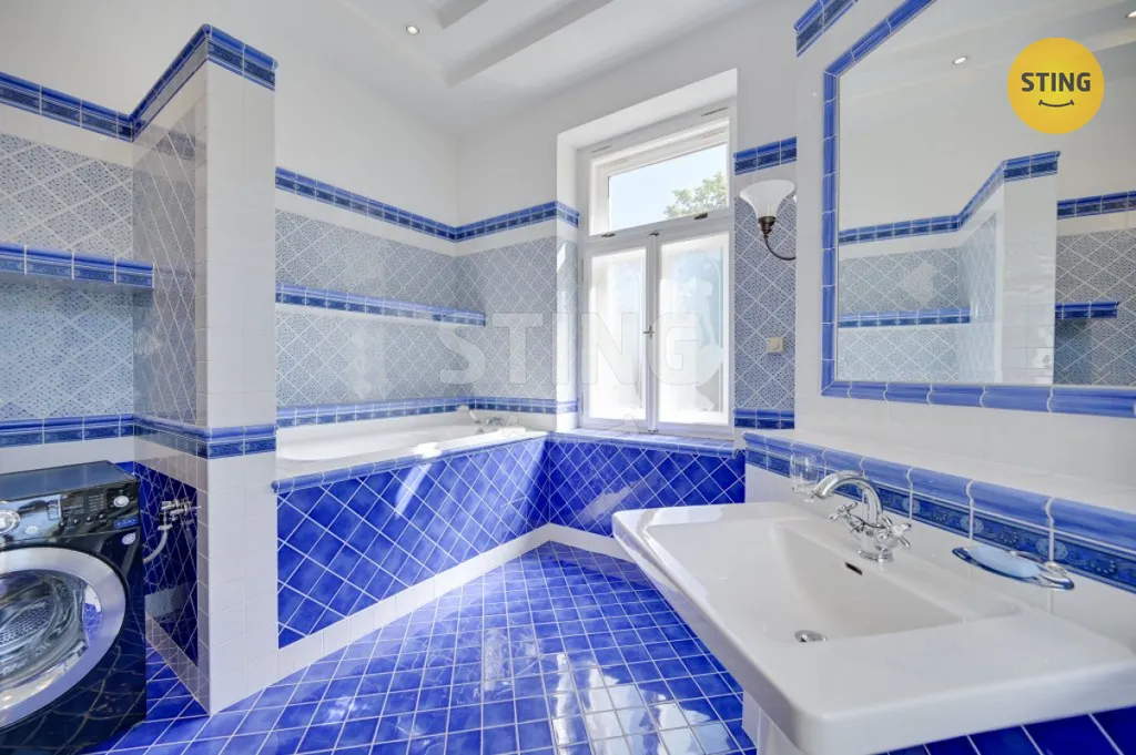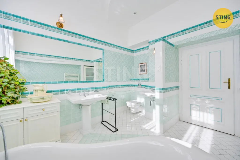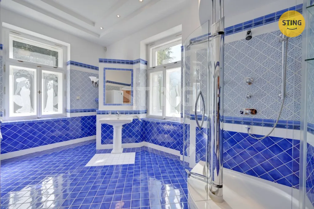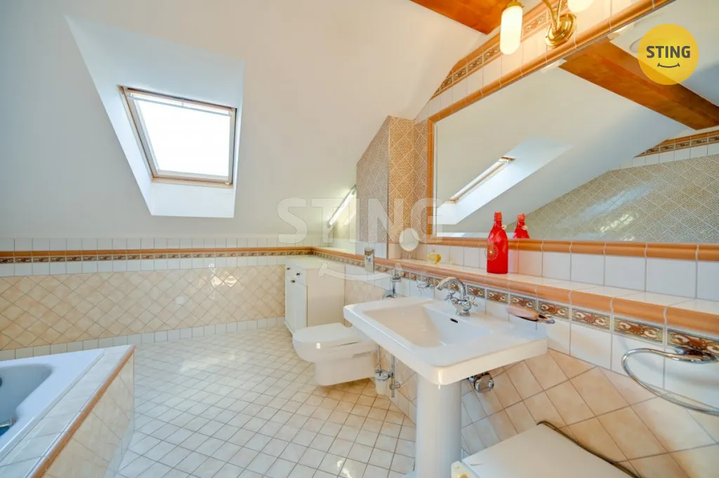 Každé patro disponuje samostatnou koupelnou, každá v jiném stylovém tónu. Interiér vily je pečlivě navržen do nejmenšího detailu. Odhalené masivní trámy v podkroví dodávají prostorům mimořádnou útulnost.