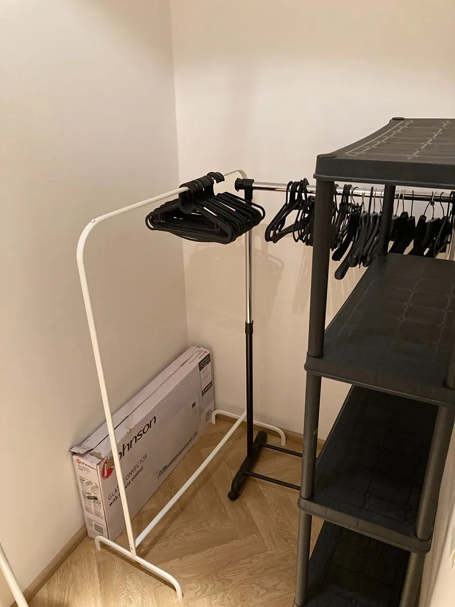 v chodbě ve vestavné skříni. Ve všech místnostech je na podlaze plovoucí