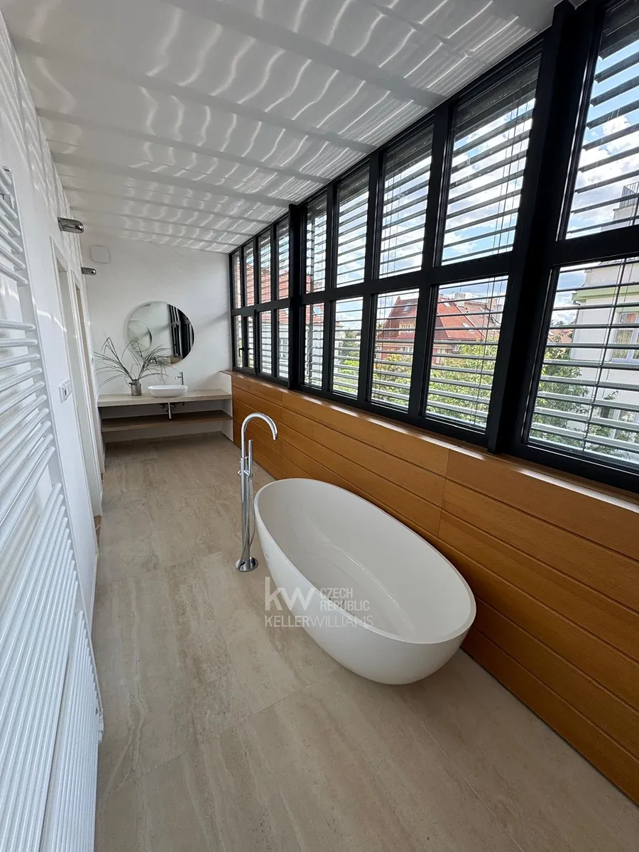 Tento nádherný dům ma samostatnou plně vybavenou kuchyň, 5 ložnic, přičemž jedna z ložnic je oddělitelná na samostatný apartmán, 4 koupelny, 3 samostatná WC, mnoho teras a balkonu s výhledy do malebného okolí této vyjímečné lokality. K dispozici pro relaxaci je zde sauna, dále funkční krb, venkovní gril, vinotéka. Horní patro - galerie má zajímavý prostor , dá se teoreticky použít na další ložnici, jen tam není koupelna. Všude jsou instalována nová okna, dřevěné parkety, kamerový sytém. Další parking pro hosty je na příjezdové cestě.