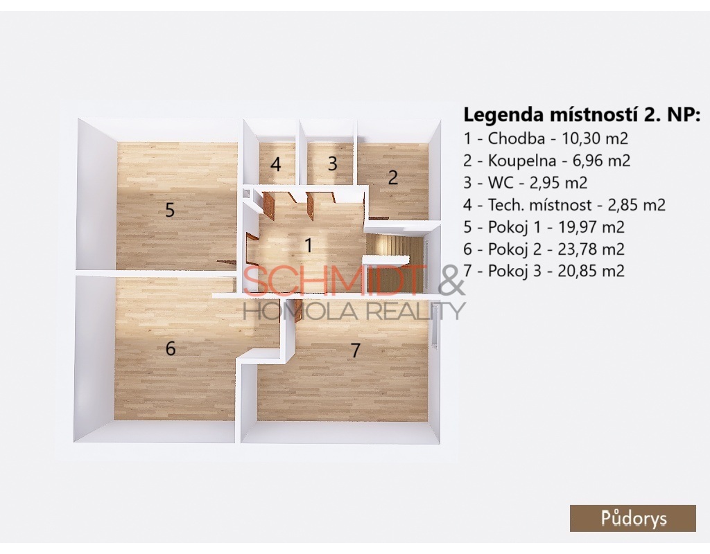 Dispozice uspokojí i větší rodinu. V přízemí najdeme prostorný obývací pokoj s kuchyňským koutem a vstupem na terasu, ložnici, koupelnu se sprchovým koutem, oddělené wc, zádveří při vstupu z ulice i do zahrady. V první podlaží potom tři samostatné neprůchozí pokoje, šatnu, oddělené wc a koupelnu s vanou.
