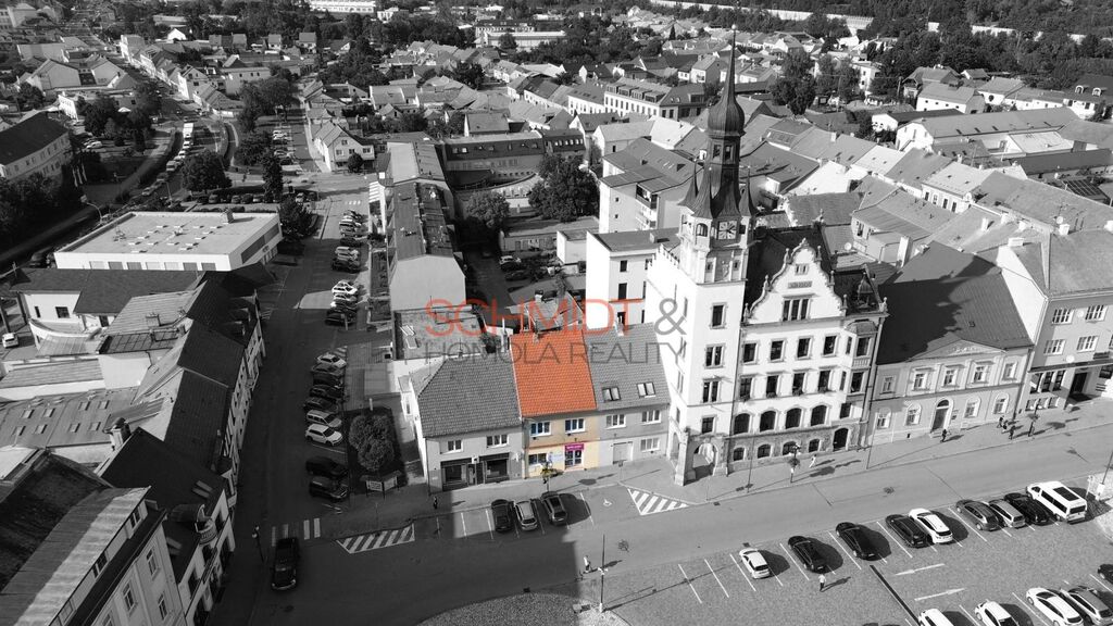 - V přízemí se nachází obchodní prostor o výměře 76 m², který má přímý vstup z náměstí. Prostor se sestává ze 4 místnosti + koupelna a WC. Aktuálně je pronajatý dlouholetému stabilnímu nájemníkovi.