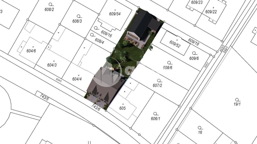 V zastoupení majitele nabízíme k prodeji investiční stavební pozemek vhodný pro výstavbu menšího developerského projektu, který zahrnuje jeden dvojdomek a jeden samostatně stojící dům (bungalov). Přehledně vidět v situačním nákresu v inzerci.