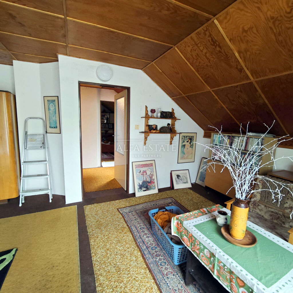 Nabízíme k prodeji samostatně stojící rodinný dům s podsklepením, jedním nadzemním podlažím a obytným podkrovím. Objekt je postaven ze zdiva z plynosilikátových tvárnic, založený na základových pásech. Jedná se o podsklepený dům – využití suterénu pro technické zázemí a skladovací prostory a jedno nadzemní podlaží + obytné podkroví. Konstrukce domu je zděná, sedlová střecha se střešní krytinou z plechových šablon, fasáda- stříkaný břízolit, kabřincový obklad. Stropy: z hurdisek do I profilů, podlahy: PVC a keramické dlaždice. Vnitřní omítky: štukové, částečně dřevěné obklady. Dům sestává ze vstupního prostoru, po pravé straně se nachází velmi prostorný obývací pokoj s balkónem a krbovými kamny, ze kterého vejdeme do kuchyně, sousedící s koupelnou. V obytném podkroví se potom nachází dvě ložnice, k jedné náleží balkon. Vytápění je řešeno elektrokotlem, vodu je možné odebírat ze studny a také z řadu, kanalizace do žumpy. Možnost napojení do veřejné kanalizace. Jedná se o klasický rodinný dům Nemovitost má solidní konstrukční stav a standardní vybavenost, která umožňuje okamžité užívání i postupnou modernizaci dle představ nového majitele. Výhodu je možnost rozdělení pozemku na druhý stavební pozemek o výměře 800m2 a stavbou rodinného domu 150m2. K tomuto záměru byl vydán souhlas s dělením pozemku, včetně souhlasu na napojení na komunikaci a veřejný vodovod a kanalizaci. Součástí prodeje nemovitosti je také pozemek o výměře 385m2-ostaní plocha, který se nachází nedaleko. Obec Hostín u Vojkovic leží ve Středočeském kraji, v okrese Mělník, přibližně 25 km od Prahy. Díky poloze v úrodné polabské nížině nabízí příjemné a klidné prostředí vhodné pro rodinné bydlení i rekreaci. Hostín je dobře dopravně napojen na okolní města. Autem se do Prahy dostanete během půl hodiny, do Kralup nad Vltavou za cca 10 minut a do Mělníka přibližně za 15 minut. Obcí prochází silnice II/101, která spojuje Neratovice s Kralupy nad Vltavou. Veřejnou dopravu zajišťují pravidelné autobusové linky s návazností na vlaky v Neratovicích a Kralupech nad Vltavou. V obci funguje mateřská a základní škola (1.–5. ročník), pošta a obecní úřad. Pro větší nákupy, zdravotní péči či další služby lze využít blízké Kralupy nad Vltavou, Neratovice nebo Mělník, kde je k dispozici kompletní infrastruktura. Hostín u Vojkovic je tradiční česká vesnice s příjemnou komunitní atmosférou. Obec se stará o společenský život – pořádá kulturní i sportovní akce a podporuje místní spolky. Okolní krajina mezi řekami Labem a Vltavou je ideální pro cyklistiku, procházky i aktivní trávení volného času v přírodě. Hostín u Vojkovic je klidná a dobře dostupná obec nedaleko Prahy s vlastní základní vybaveností a příjemným venkovským prostředím. Díky blízkosti měst Kralupy nad Vltavou, Neratovice a Mělník nabízí ideální kombinaci klidu, přírody a rychlé dostupnosti veškerých služeb. Velmi rádi vám tuto nemovitost představíme při osobní schůzce.