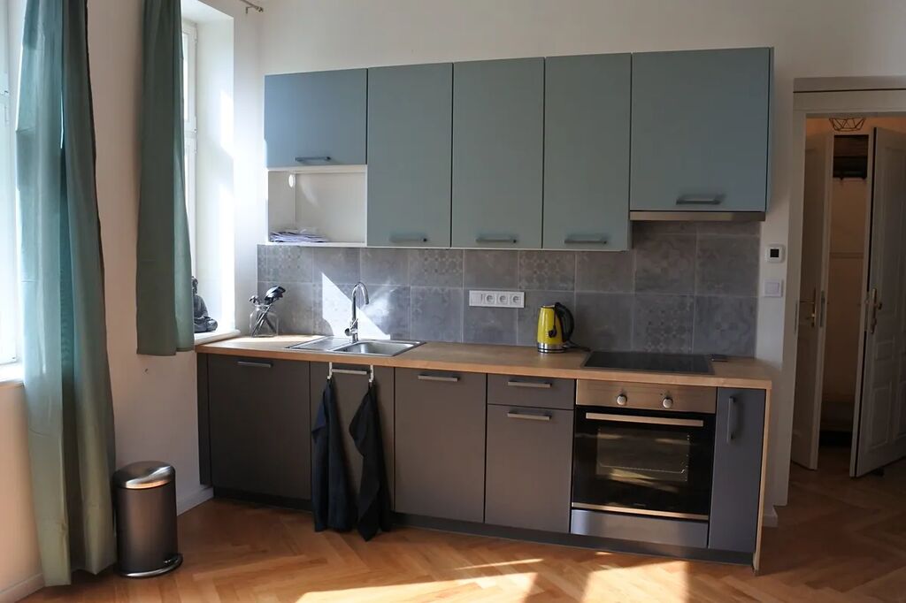 Prodáme velmi pěkný, udržovaný, zařízený byt o výměře 25 m2 + balkon 2 m2. Tento byt k prodeji se nachází ve 5. patře secesního, zrekonstruovaného domu s výtahem. Byt je velmi šikovně řešený, je zde koupelna se sprchou a WC, předsíňka a samostatný pokoj s kuch. koutem. Kuchyňská linka je vybavena všemi spotřebiči vč. základního nádobí. Pokoj je zcela zařízený. Z pokoje je výstup na balkon orientovaný do tichého vnitrobloku. Byt skýtá veškeré pohodlí a vysoký standard bydlení pro svého uživatele. K bytu patří sklepní kóje umístěná v suterénu domu. Nespornou výhodou tohoto bytu je jeho umístění nedaleko parku Jiřího z Poděbrad a nedaleko několika zastávek MHD jak autobusových tak tramvajových linek tak i stanice metra.. V pěší vzdálenosti se nachází veškeré obchody, restaurace, pošta, zdravotní středisko atd..Krásný byt, ve výjimečné lokalitě! Vhodné na i na investici!