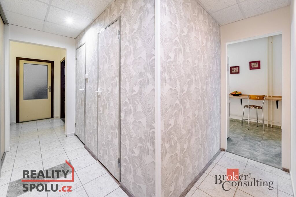 Byt se skládá ze tří neprůchozích pokojů, prostorné předsíně s chodbou, kde jsou umístěny vestavěné skříně, kuchyně, koupelny a samostatné toalety. K bytu náleží sklepní kóje (2 m2) a dále je možnost využívat společnou kolárnu. Orientace bytu je na východ. Dům prošel kompletní revitalizací – zateplení, výměna oken za plastová, nový výtah, úprava společných prostor. Díky své poloze, kdy je byt ze všech stran obklopen dalšími jednotkami, nabízí velmi nízké náklady na vytápění. Fond oprav činí cca 2.800 Kč.