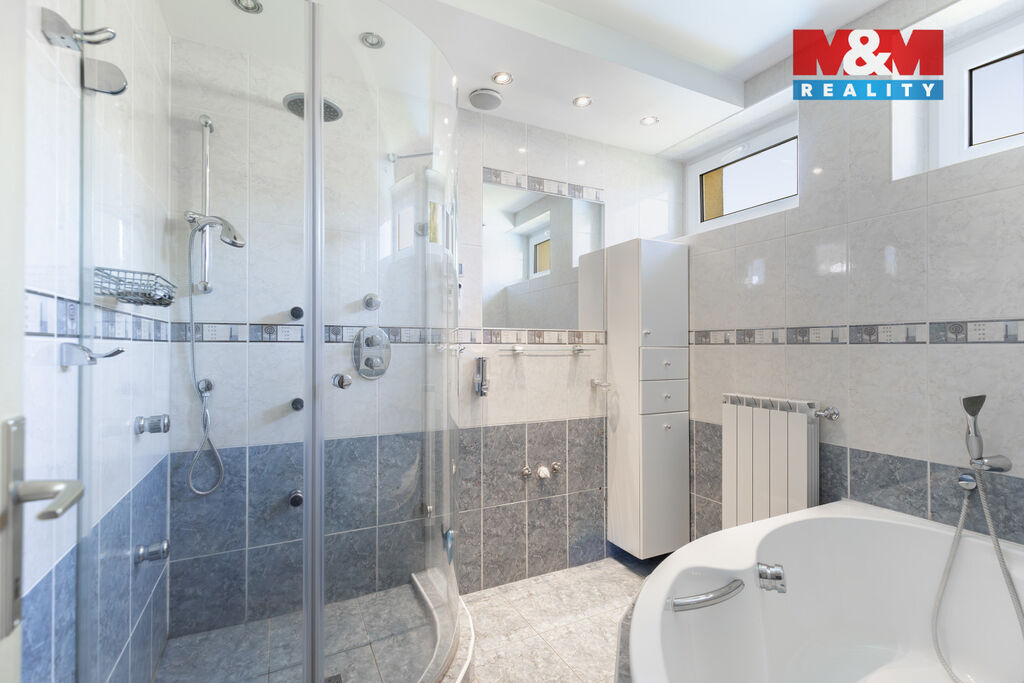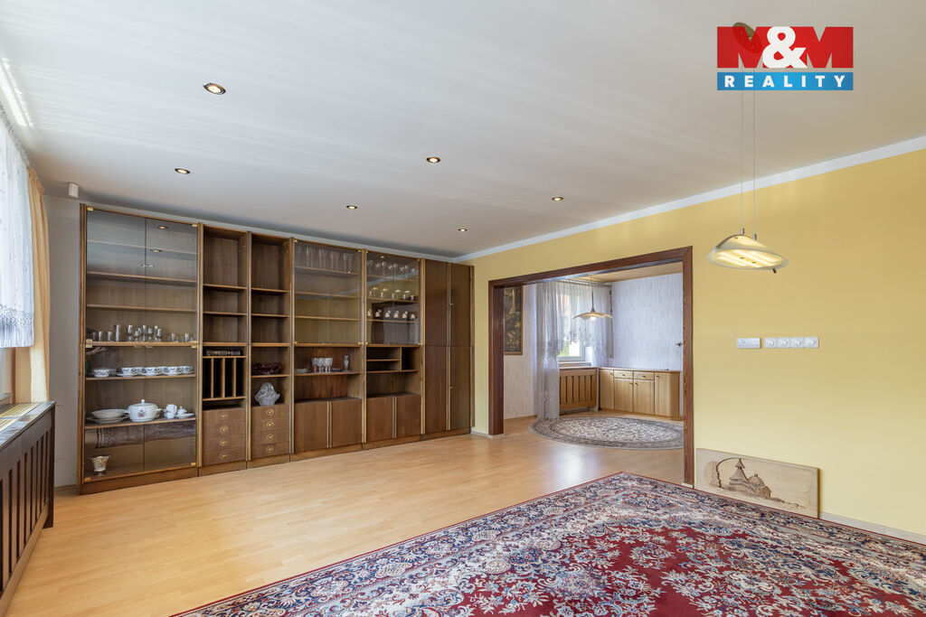 Nabízíme k prodeji podsklepený, zděný rodinný dům 7+1 na atraktivní adrese v klidné části obce Hlučín. Dům lze předělat na dvougenerační, obě podlaží mají sociální zázemí a rozvod vody ke kuchyni. Při vstupu vás vítá prostorná, otevřená, stylová hala s krbem, z které se vchází do obytného přízemí. To disponuje 2 pokoji, prádelnou, WC a místnosti v rekonstruovaném stavu, nutno dodělat. Po schodišti se dostaneme do 1.NP, kterému dominuje slunný obývací pokoj propojený s jídelnou, kuchyň, 2 pokoje, koupelna, WC a komora. Z obývacího pokoje je vstup na balkón s výhledem do okolí. K domu patří pečlivě udržovaná zahrada se zastřešeným bazénem s protiproudem a vířivkou a zasklená terasa s příjemným posezením. Vjezd do domu je bránou na dálkové ovládání. Parkování zajištěno přístřeškem pro 3 auta a prostor na nádvoří. Dům je napojen na zabezpečovací systém. Topení plynovým kotlem, veřejný vodovod je zaveden, dům je ale napojen na studnu na zahradě, veřejná kanalizace je. Více info v RK.