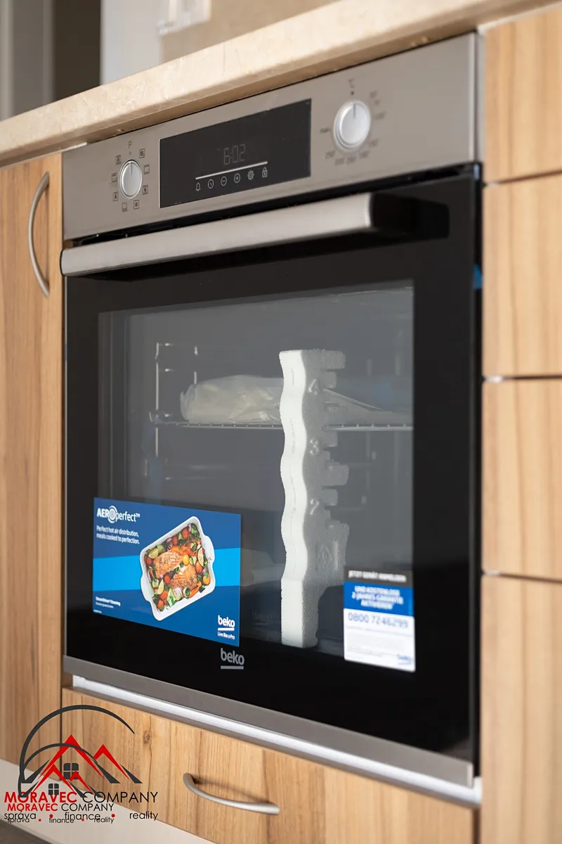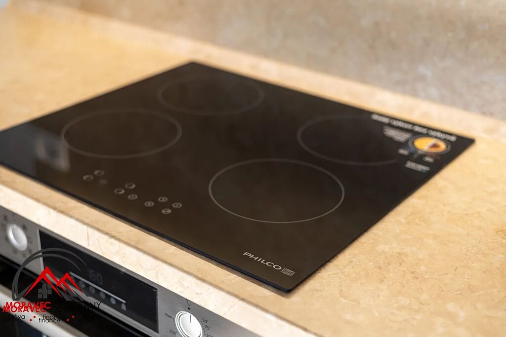 Vybavení bytu zahrnuje kuchyň s elektrickou troubou a indukční varnou deskou. Koupelna je vybavena vanou, zrcadlovou skříňkou na hygienické potřeby, pračkou a WC. Ohřev vody zajišťuje elektrický bojler.
