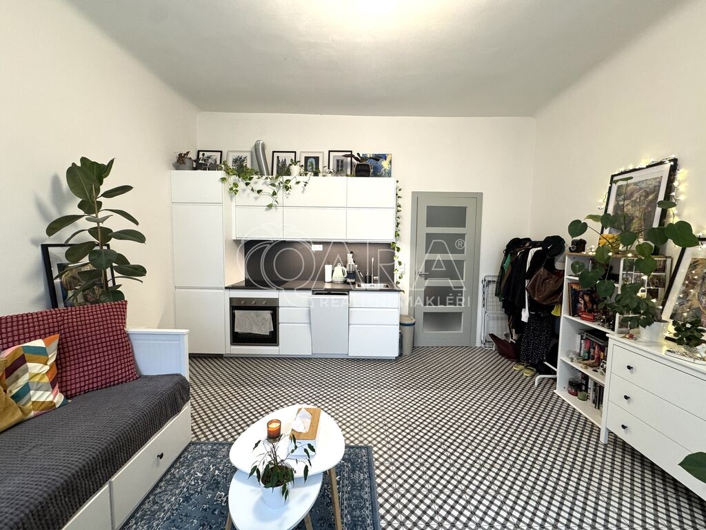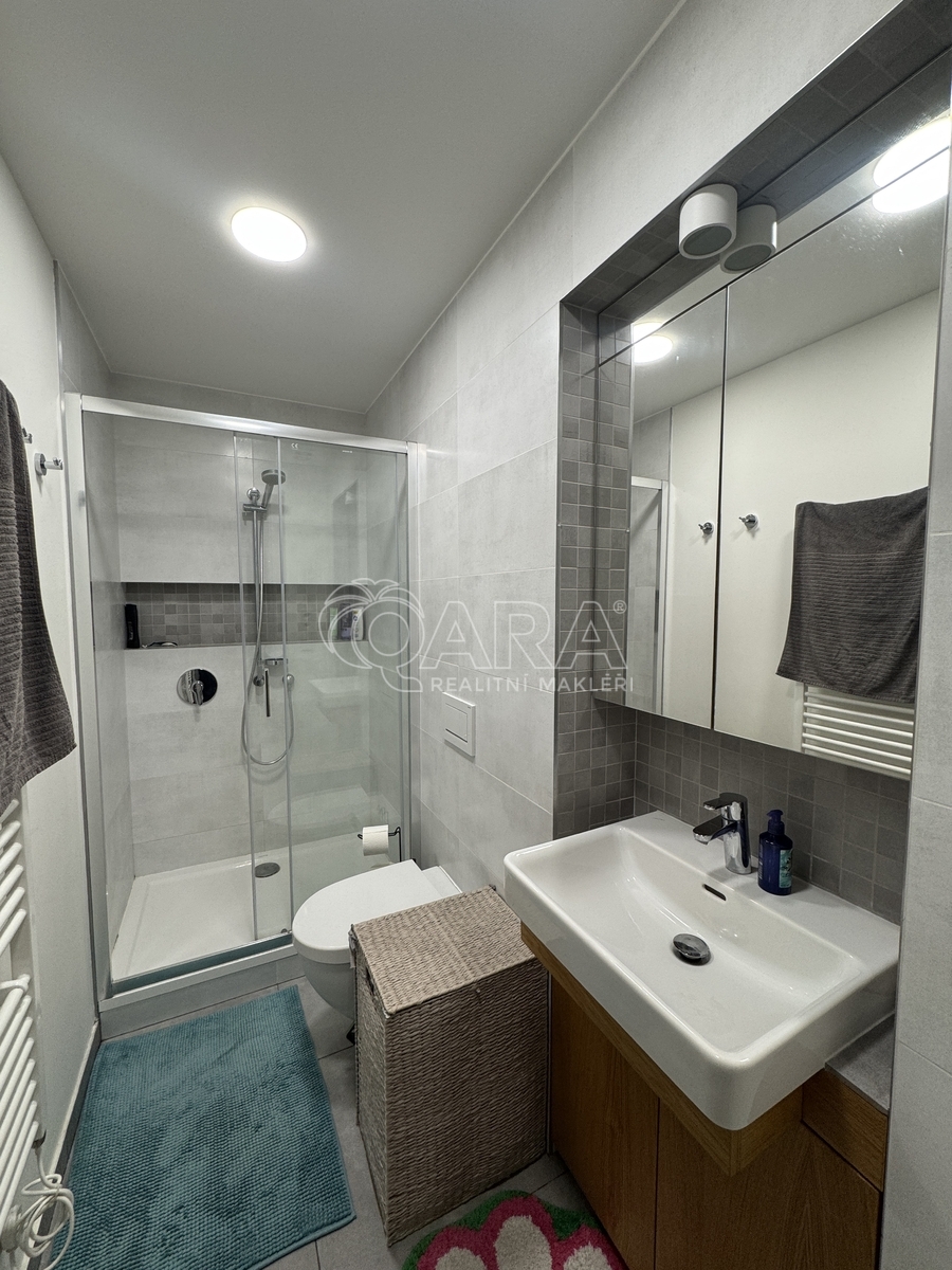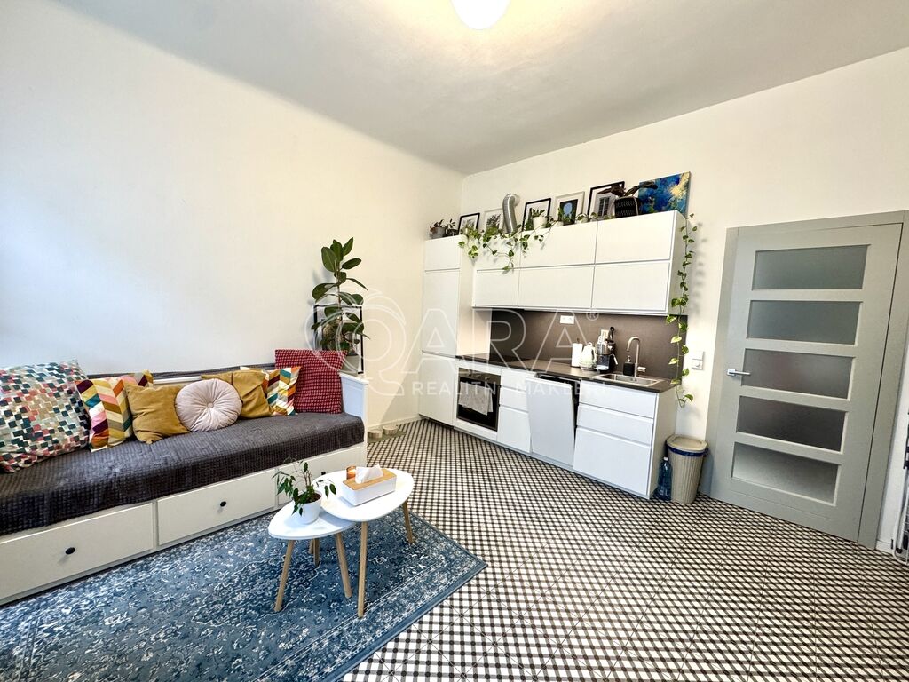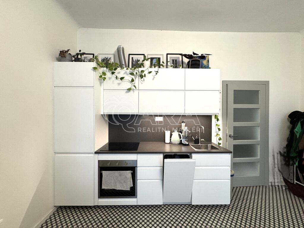 Velehradská. Vstupní chodba s úložnými prostory v podobě vestavěné skříně. Nová koupelna se sprchovým koutem, toaletou, pračkou. Spací část s moderní kuchyňskou linkou. Vybavení náleží stávající nájemnici. Byt je vhodný pro jednu maximálně dvě osoby. K jednotce náleží zdění sklep a komora na patře.