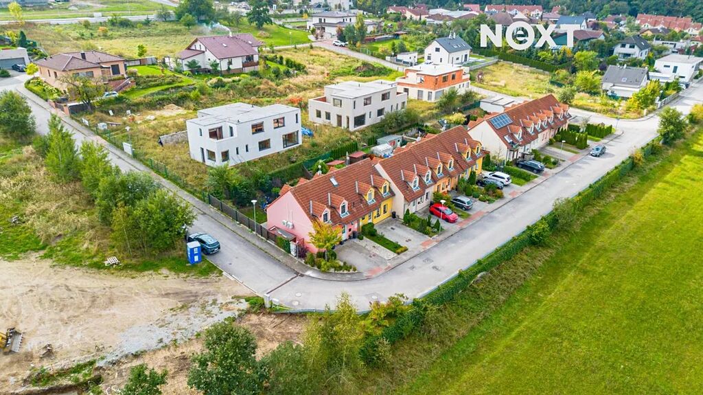 Zahrada je menší, ale nabízí prostor pro krytou pergolu pro venkovní posezení, trampolínu. Před domem jsou dvě parkovací stání. Technické detaily a rekonstrukce: Dům je vytápěn plynovým kotlem s ohřevem vody a v přízemí je podlahové topení, v 5/2025 proběhla rekonstrukce spodního WC, interiérové dveře, samostatná spodní ložnice s příčkou a novou elektroinstalací. Během minulých let se přidaly do spodních oken předokenní žaluzie, vybudována šatna, klimatizační jednotky, rekonstrukce půdního prostoru.