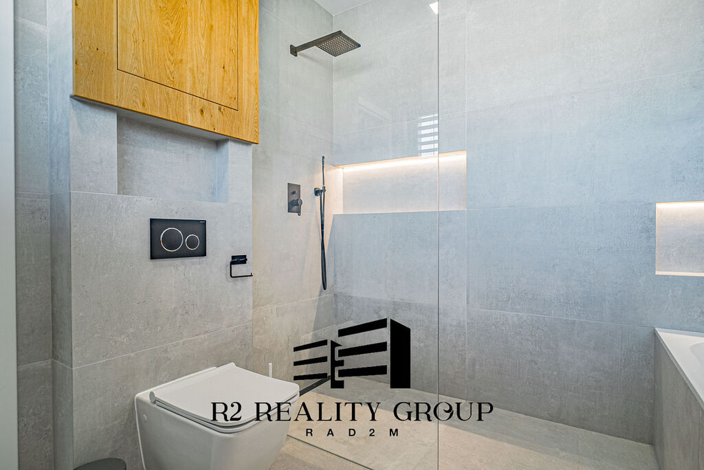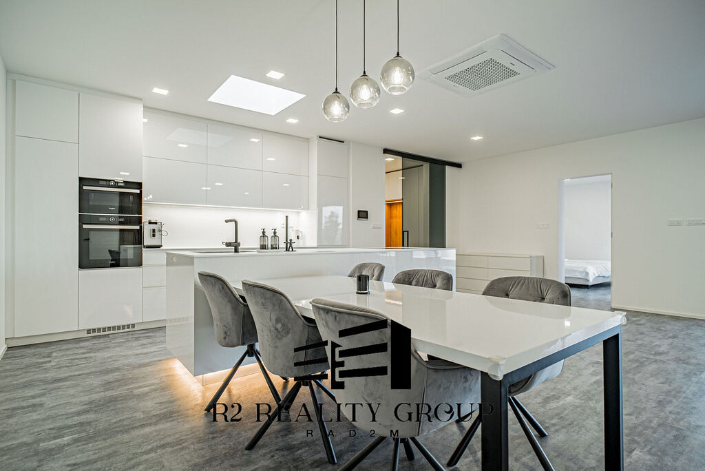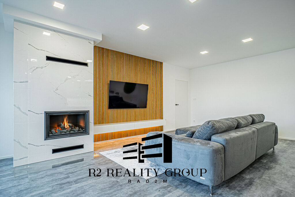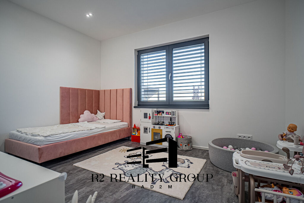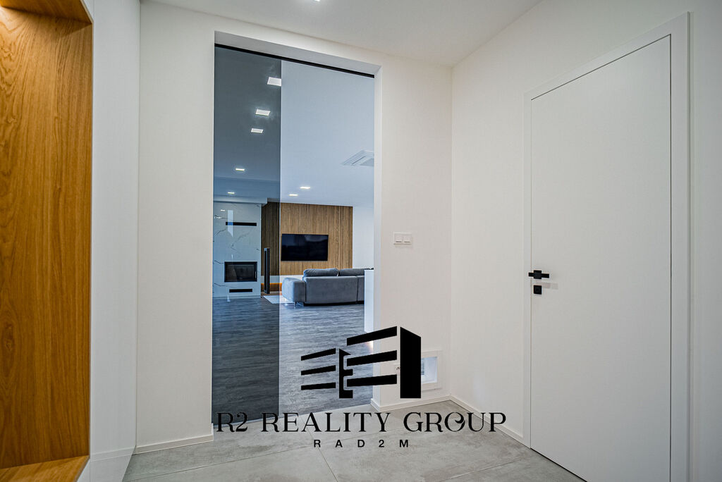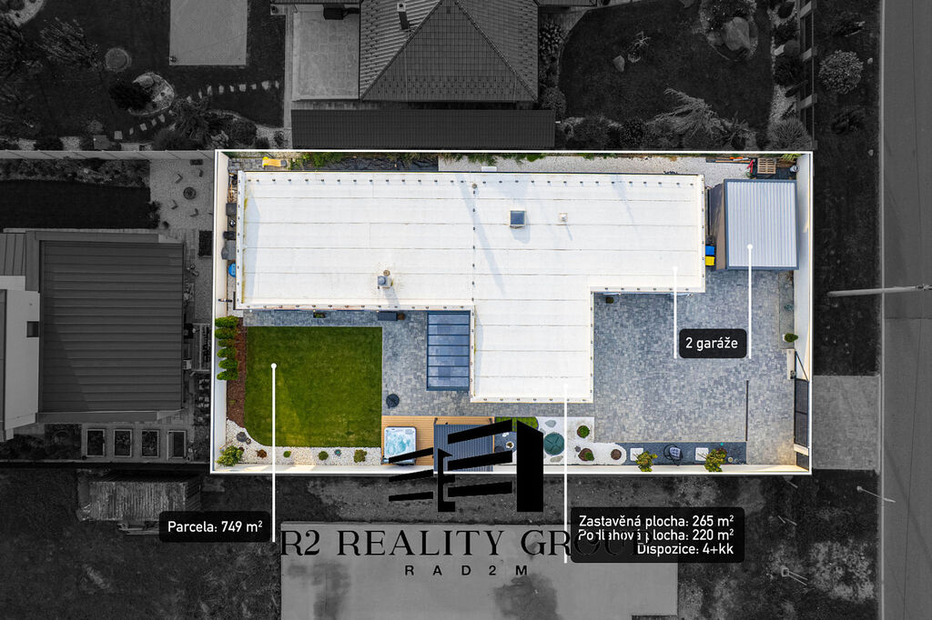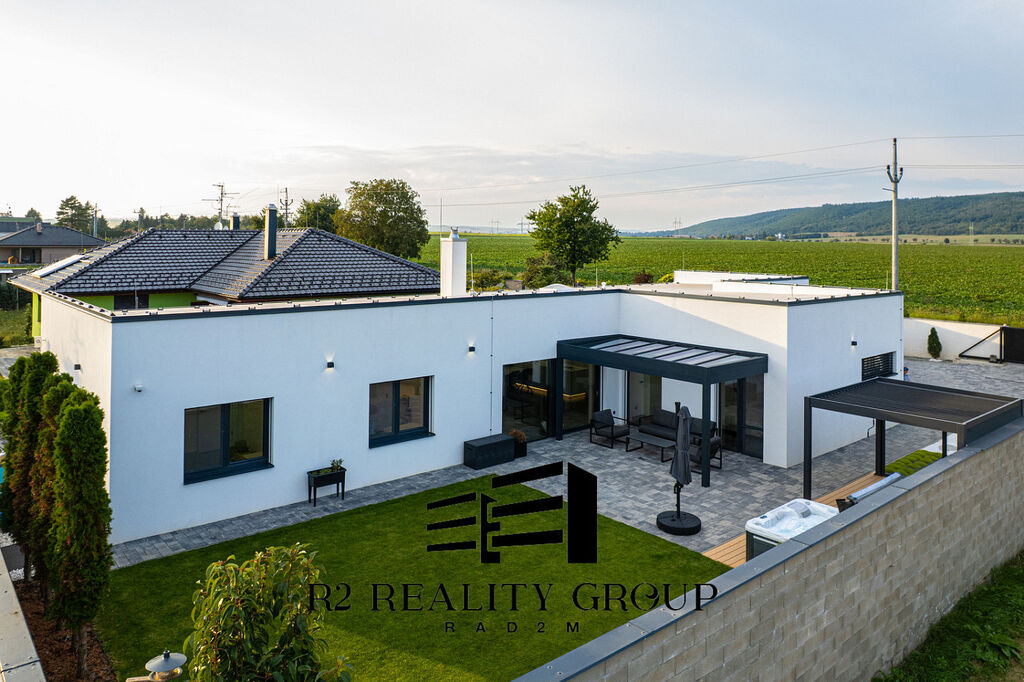Realitní kancelář R2 nabízí k prodeji moderní novostavbu v Kostelci na Hané. Novostavba o dispozici 4+kk a pozemkem 749m² má dvě koupelny, tři toalety, technickou místnost a dvě garáže. Každý pokoj má svou walk-in šatnu. V domě je vinylová lepená podlaha, velkoformátové obklady, stropní klimatizace Samsung, indukční deska Bora. Vytápění domu je řešeno tepelným čerpadlem NIBE s podlahovým vytápěním v celém domě včetně garáže, příjemnou atmosféru vytvoří krb na dřevo. V obývacím pokoji je hliníkový portál o délce čtyři metry. Vstup na terasu je z obývacího pokoje i ložnice. Veškerý nábytek je dělaný na míru. Stavba byla zkolaudována koncem roku 2023. Vlastní vrtaná studna. Celkové měsíční náklady na dům jsou 5 tisíc Kč.