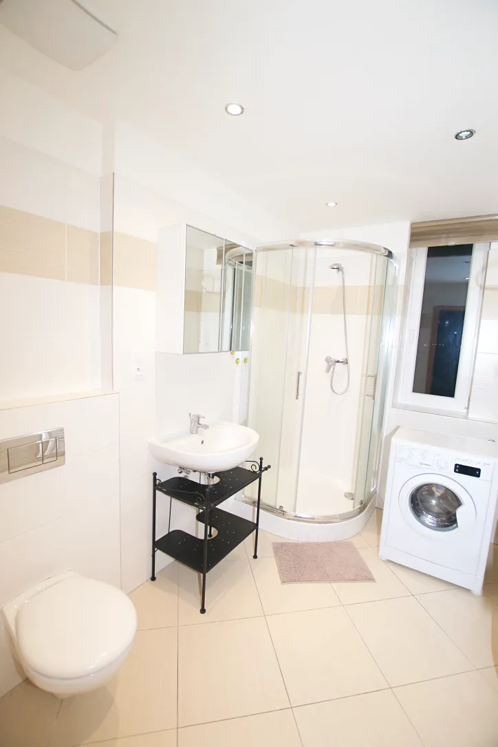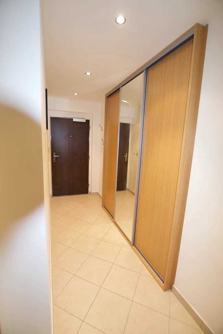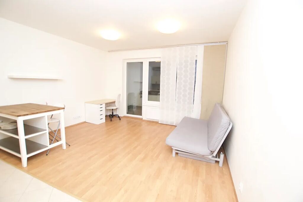 Nová bytová jednotka s podlahovou plochou 40 m2 se nachází v 8.NP novostavby. K bytu naleží balkon a sklep. V obývacím pokojí se nachází moderní kuchyňská linka včetně všech spotřebičů, stůl, rozkládací pohovka, v předsíní je velká vestavěná skříň, v koupelně sprchový kout s WC a pračka. Je možnost pronajmout parkovací stání.