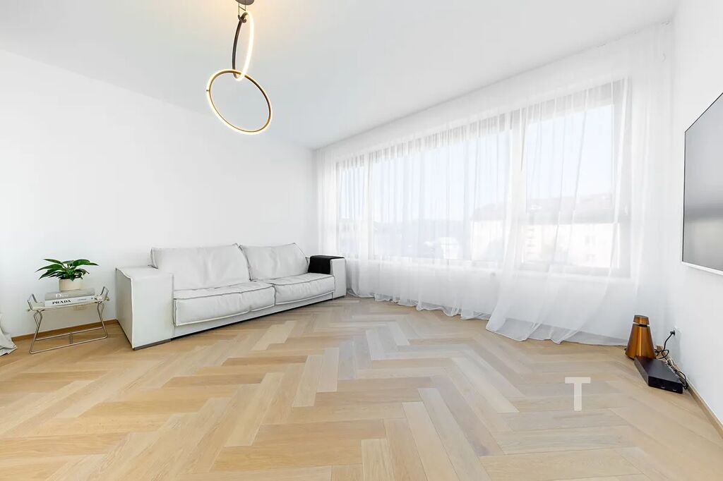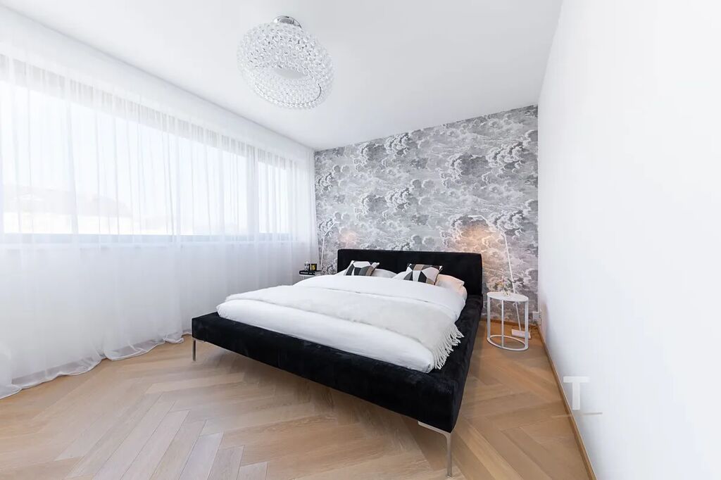 Byt disponuje nadstandardní stavebními prvky a designem od světových značek (B&B Italia, Baxter, Knoll, Flos, Foscarini, Meridiani, Gaggenau, Duravit, Axor).