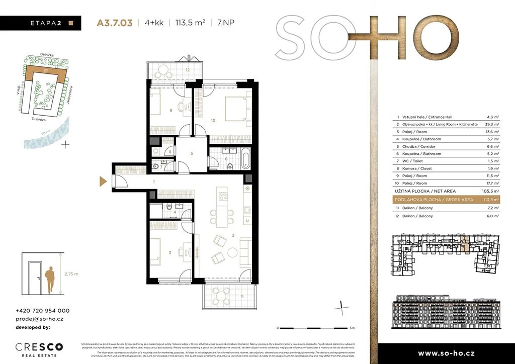 Více informací o tomto bytě, projektu a aktuální nabídce bytů z 2. etapy najdete na webových stránkách projektu. Rádi vás přivítáme také v našem prodejním centru: