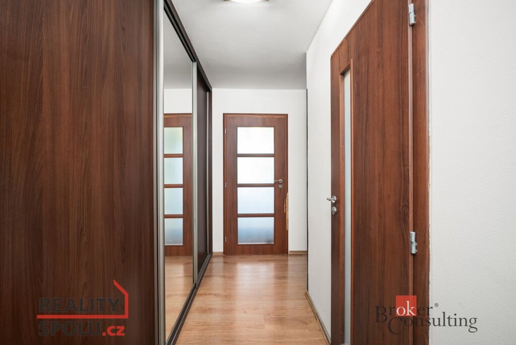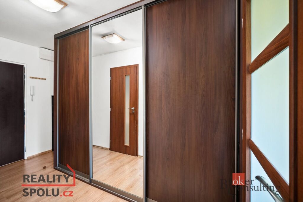 Součástí chodby je prostorná vestavěná skříň, která poskytuje dostatek úložného prostoru.