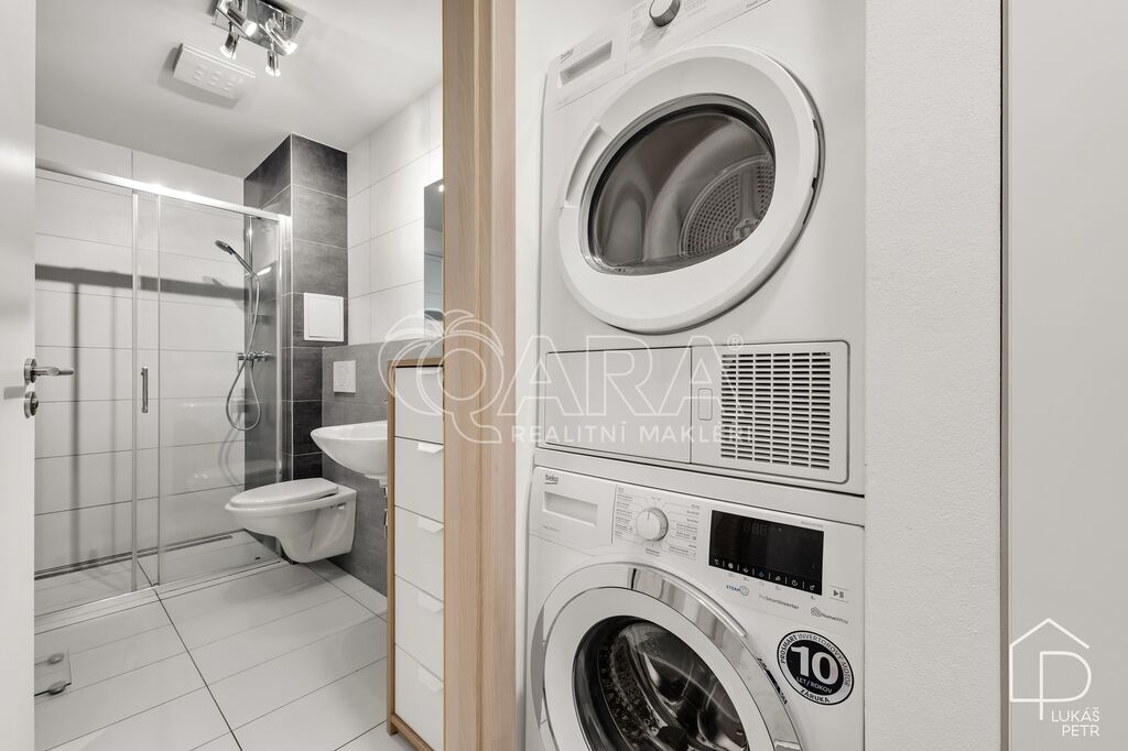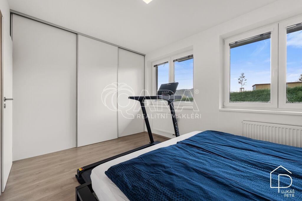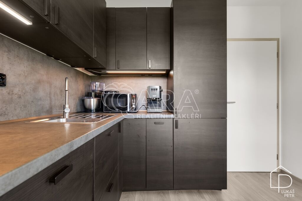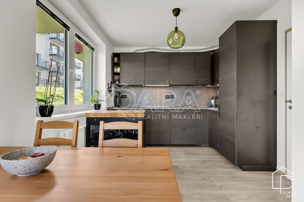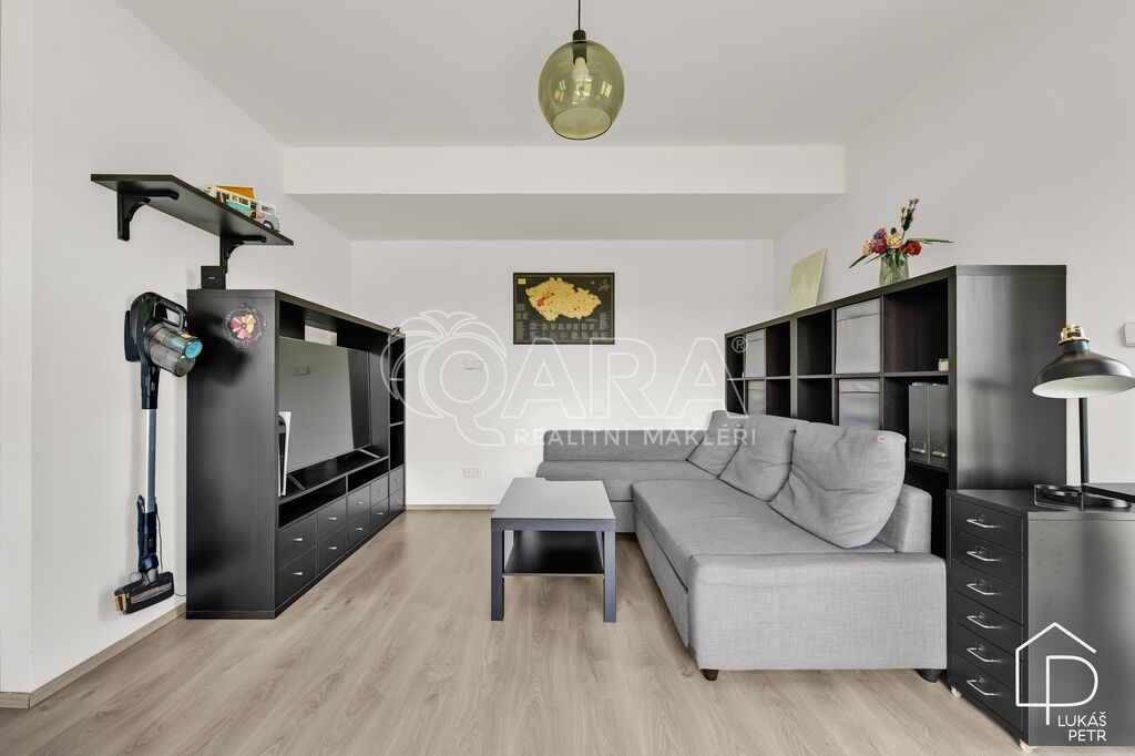 Dispozice dává smysl – obývací pokoj s kuchyňským koutem jako hlavní prostor bytu, samostatná ložnice a koupelna se sprchovým koutem a WC. Kuchyňská linka Ikea se spotřebiči, plovoucí podlahy, plastová okna. Vytápění je řešeno centrálně z domovní plynové kotelny, energetická třída B.
