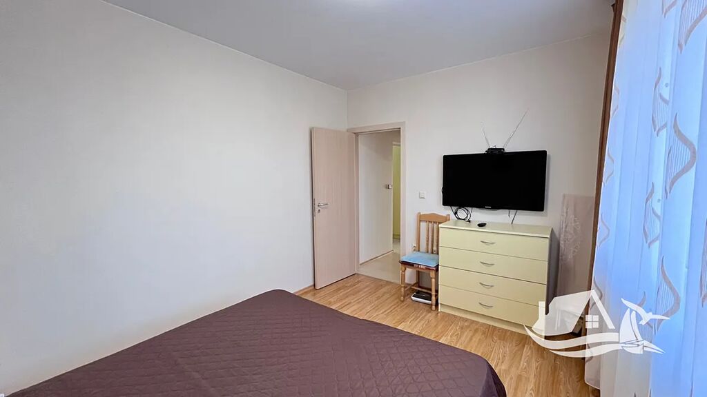 Uvnitř vás přivítá útulný obývací pokoj s kuchyňským koutem, kam proudí přirozené světlo z francouzských oken. Z obývací části vstoupíte do samostatné ložnice, která poskytuje klid a soukromí pro chvíle odpočinku. Na balkoně si můžete vychutnávat ranní kávu s výhledem na moře a pocit, že den začíná přesně tak, jak má.