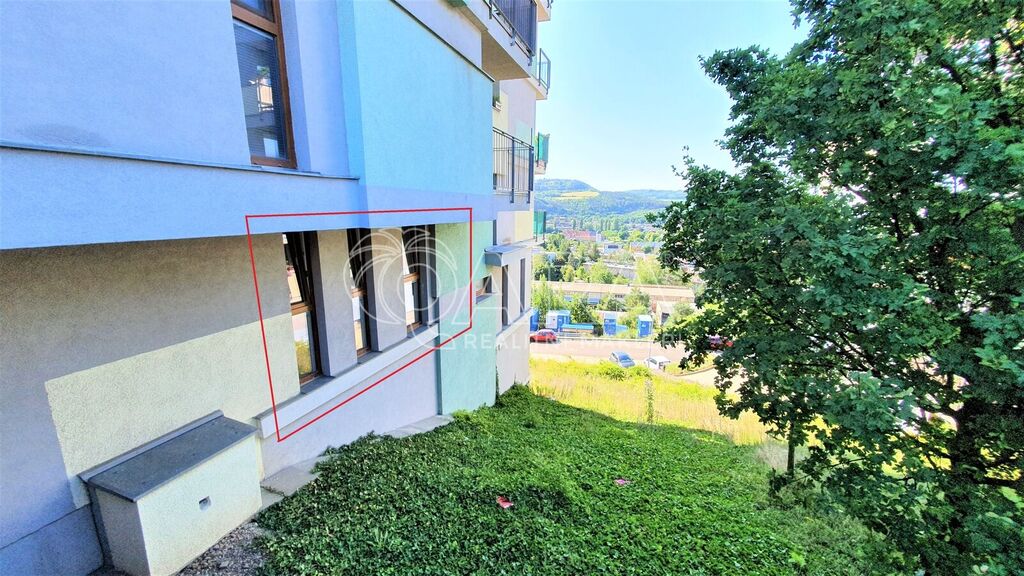 Byt se nachází v 1. nadzemním podlaží moderního sedmipodlažního domu z roku 2007 v ulici Na Horizontu – Králův Dvůr.