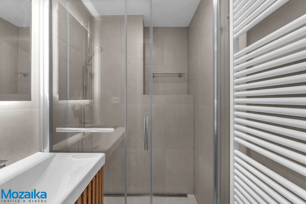 Vstoupíte do prostorné chodby s praktickými vestavěnými skříněmi, které poskytují dostatek úložného prostoru a také místem pro pračku a vlastní plynový kotel ústředního topení. Dominantou bytu je světlý obývací pokoj propojený s kuchyní vybavenou moderní kuchyňskou linkou, kde najdete kompletní vybavení včetně vestavných spotřebičů - lednice, mrazničky, indukční varné desky, trouby a myčky nádobí. Vše je zcela nové a čeká na svého prvního nájemce. Byt dále nabízí komfortní ložnici, další samostatný pokoj ideální pro pracovnu či dětský pokoj, elegantní koupelnu se sprchovým koutem a samostatné WC pro větší pohodlí. V chodbě jsou velké šatní skříně a v jedné z nich je schovaný také kotel ústředního topení a po ním místo pro pračku s napojením na odpady a vodu. Vlastní kotel ústředního topení Vám zajistí flexibilitu v určení délky topné sezony.