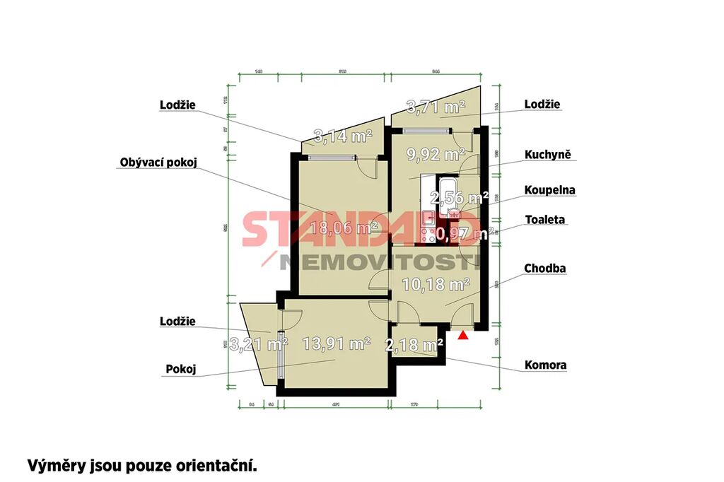 Užitná plocha bytu je 59,67 m² a zajišťuje pohodlné a praktické bydlení. Nemovitost je v původním stavu a je nevybavená, což novým majitelům umožní upravit si interiér dle vlastního stylu. K bytu náleží 3 lodžie o celkové ploše 8,7 m² a sklep 1,2 m2.
