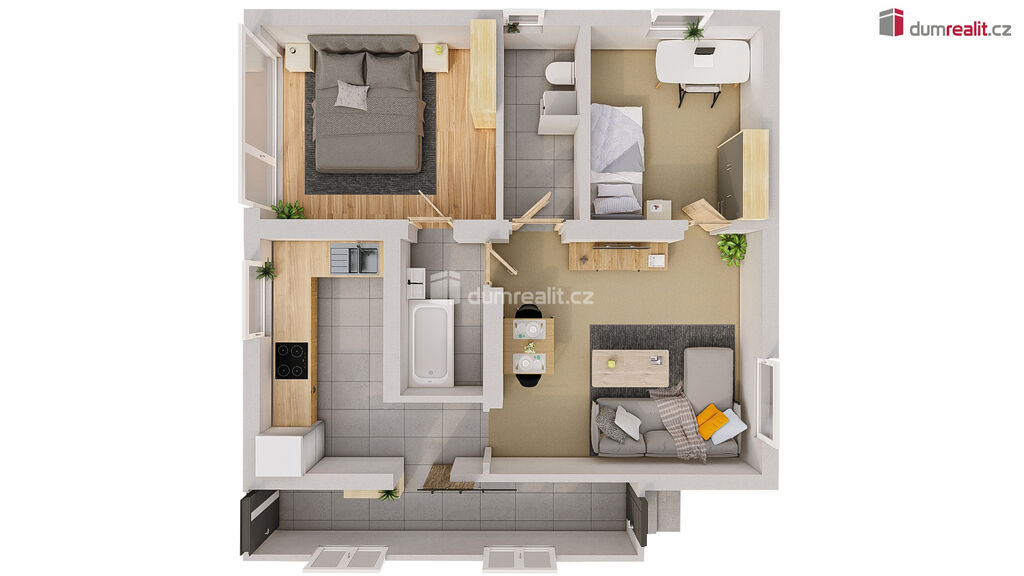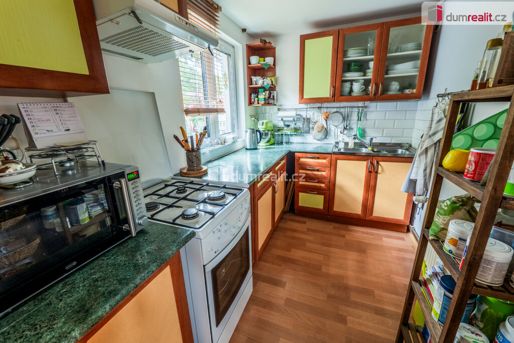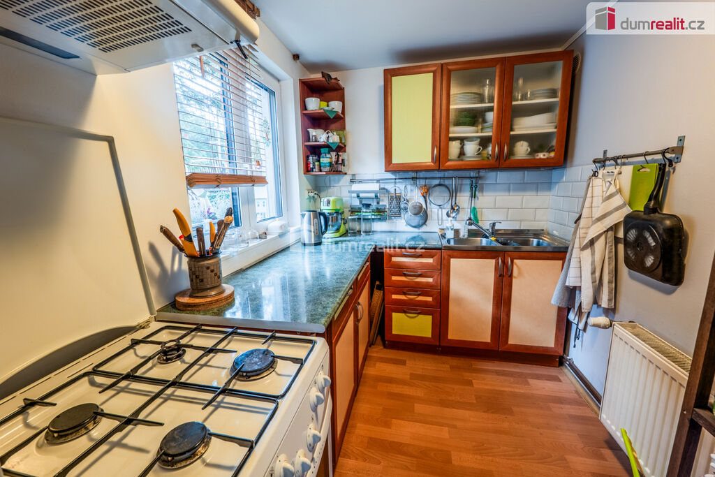 V interiéru zůstává kuchyňská linka se sporákem a v ložnici vestavěná šatní skříň.