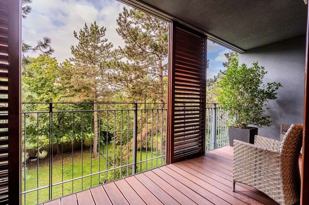 Byt nabízí obývací pokoj s přístupem na terasu a novou kuchyňskou linku včetně spotřebičů Miele. Ložnice poskytuje dostatek soukromí a pohodlí také se vstupem na terasu. Koupelna je vybavena sprchovým koutem a umyvadlem, WC a bidetem. V koupelně jsou také k dispozici nové spotřebiče značky Miele (pračka a sušička). Chodba je prostorná a součástí je vestavěná skříň, která nabízí dostatek úložného prostoru. Byt je orientován na jihozápad s výhledem do zahrady, ve velmi klidné části.
