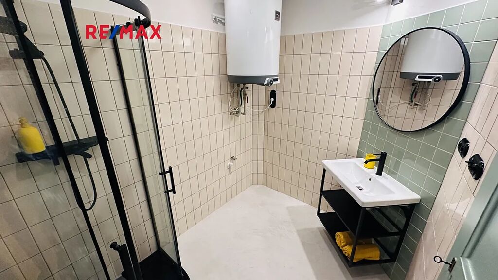 Byt je částečně zařízen a je vybaven všemi moderními prvky, které si nároční klienti mohou přát. K dispozici je klimatizace, což zajišťuje příjemné prostředí během horkých letních dnů. Koupelna je vybavena elektrickým bojlerem pro zajištění teplé vody. V domě se nachází výtah, což přispívá k pohodlnému přístupu do bytu.