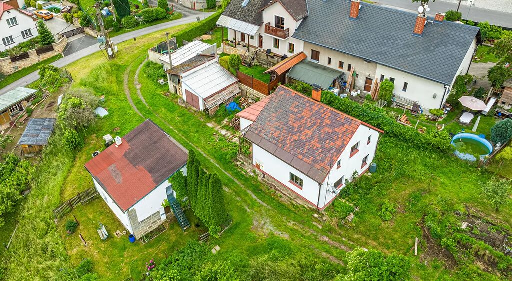 Součástí prodeje je také podíl 6/25 na pozemku parc. č. 593/7 o výměře 283 m², což odpovídá 67,92 m². Tento pozemek slouží jako příjezdová cesta k domu.