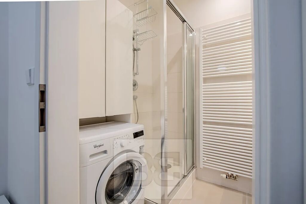 Koupelna je vybavena sprchovým koutem, toaletou a pračkou.