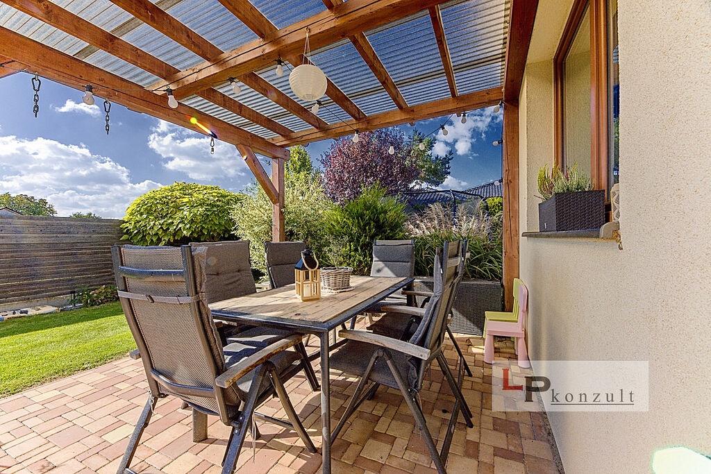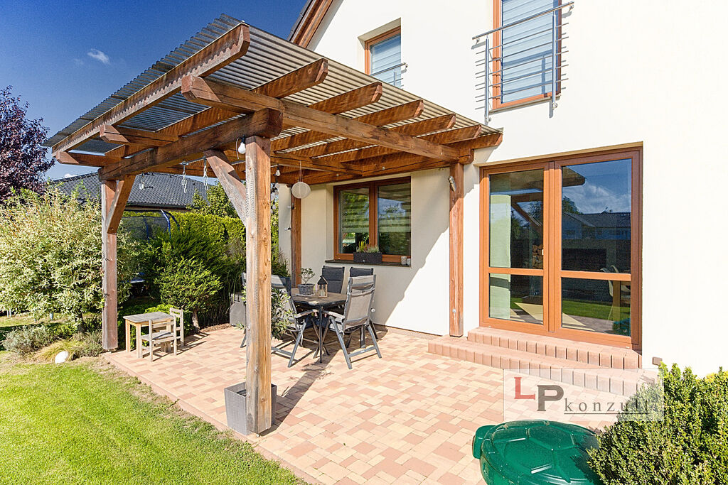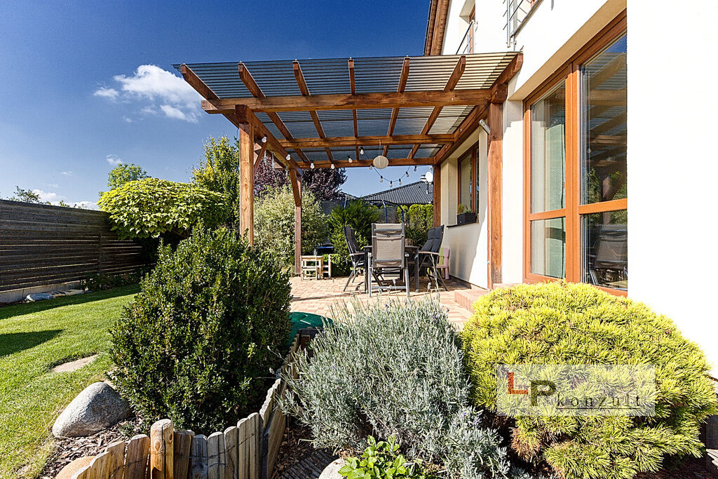 Rodinný dům o velikosti 5+KK (129m²) k nastěhování, stojí v oblíbené příměstské obci Dubany. Jedná se o zděný plně vybavený a dokončený RD, včetně zahrady (640m²) a venkovních úprav. Srdcem života v domě je velký obytný prostor s krbovou vložkou, jídelnou i kuchyní a přímým vstupem na krytou terasu s pergolou orientovanou na JZ. V přízemí je vhodně umístěn jeden pokoj - jako třeba ložnice na stáří. Na krásné zahradě se vzrostlou zelení využijete vrt na zalévání, dále zahradní domek, skleník, kryté stání pro auto včetně zámkové dlažby a samozřejmostí je také automatická vjezdová brána. Dům je vybaven krb. vložkou s rozvodem vzduchu a především podlahovým topením s plynovým kotlem. V podkroví kombinace s radiátory. S čistotou v domě pomůže centrální vysavač. Okna jsou trojskla, fasáda zateplena šedým polystyrenem. Jak vidíte, o tepelný komfort a náklady na vytápění se strachovat rozhodně nebudete.