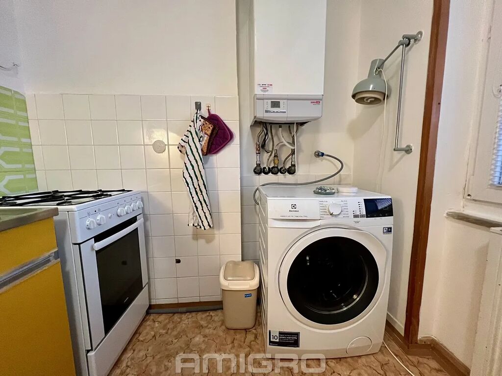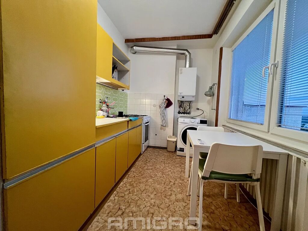 Byt se k pronájmu nabízí zařízen kuchyňskou linkou, sporákem, lednicí, pračkou, vest. skříně v předsíni i šatně.