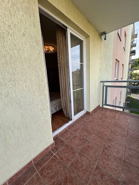 Byt se skládá z předsíně, obývacího pokoje s kuchyňským koutem, 2 ložnic, koupelny s vanou a dalšího WC, dvou balkonů a sklepa.