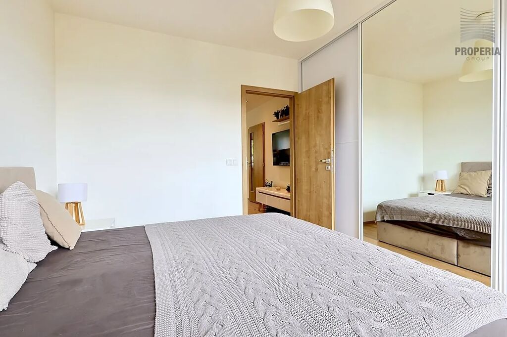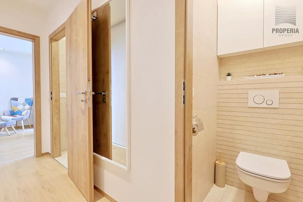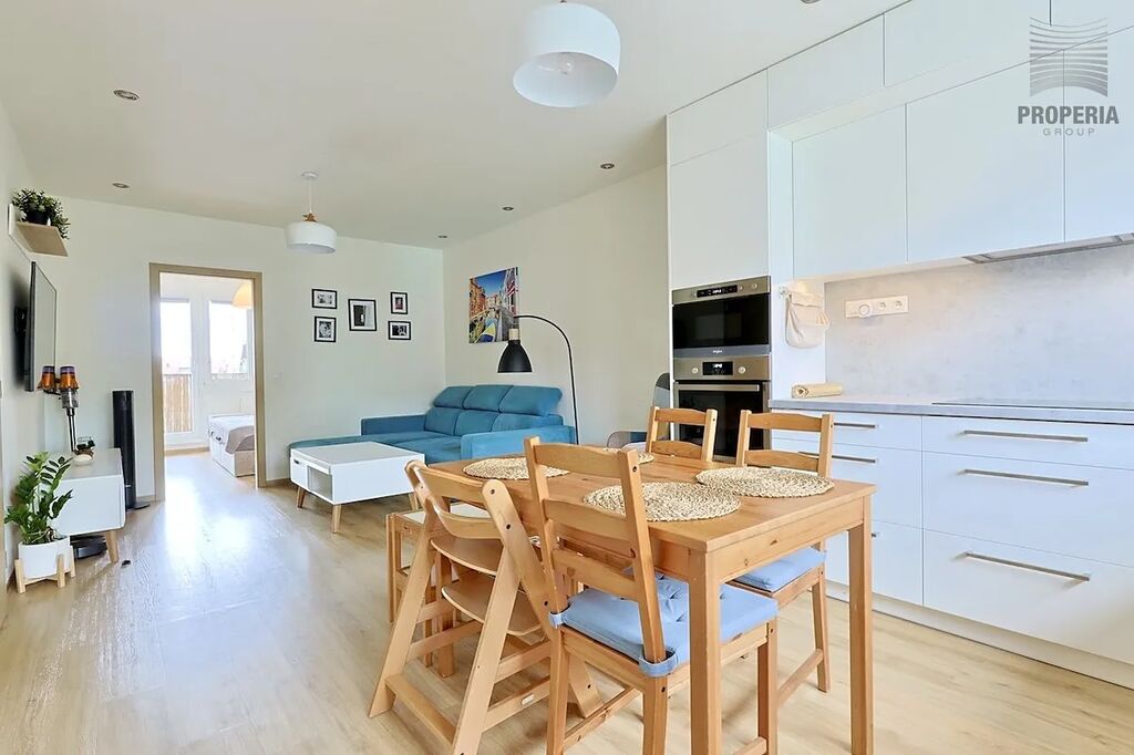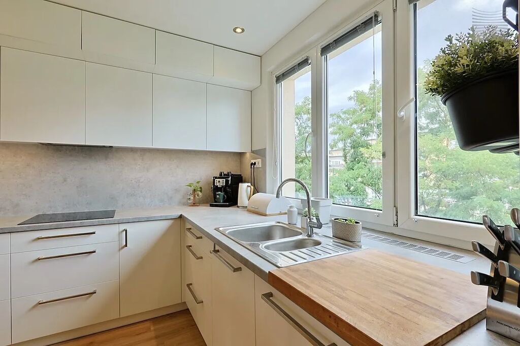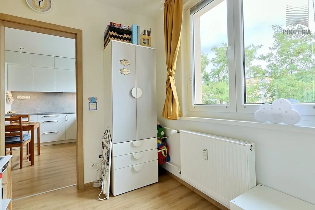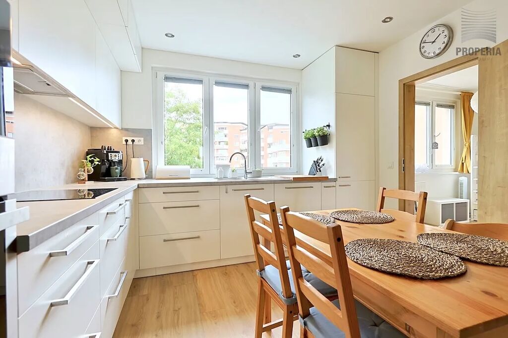 Tato elegantní a promyšleně upravená bytová jednotka prošla kompletní rekonstrukcí v roce 2020, během níž byla změněna její dispozice z původního 2+1 na prostorné a praktické 3+kk. Výsledkem je vzdušný interiér s moderní kuchyní na míru, prostorným obývacím pokojem, příjemnou ložnicí s balkonem a dětským pokojem/pracovnou, stylovou koupelnou a především dostatkem úložného prostoru díky vestavěným skříním.