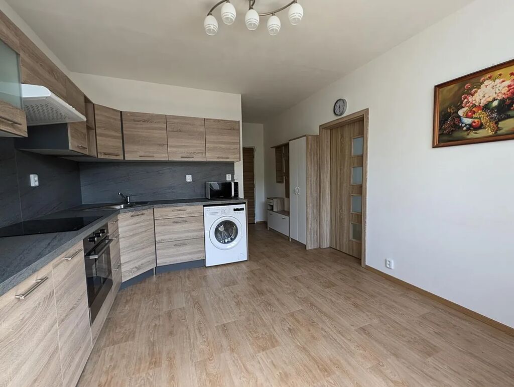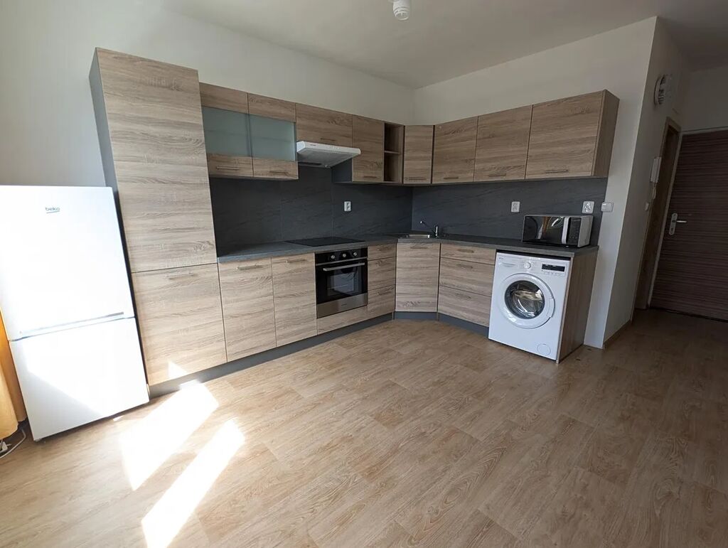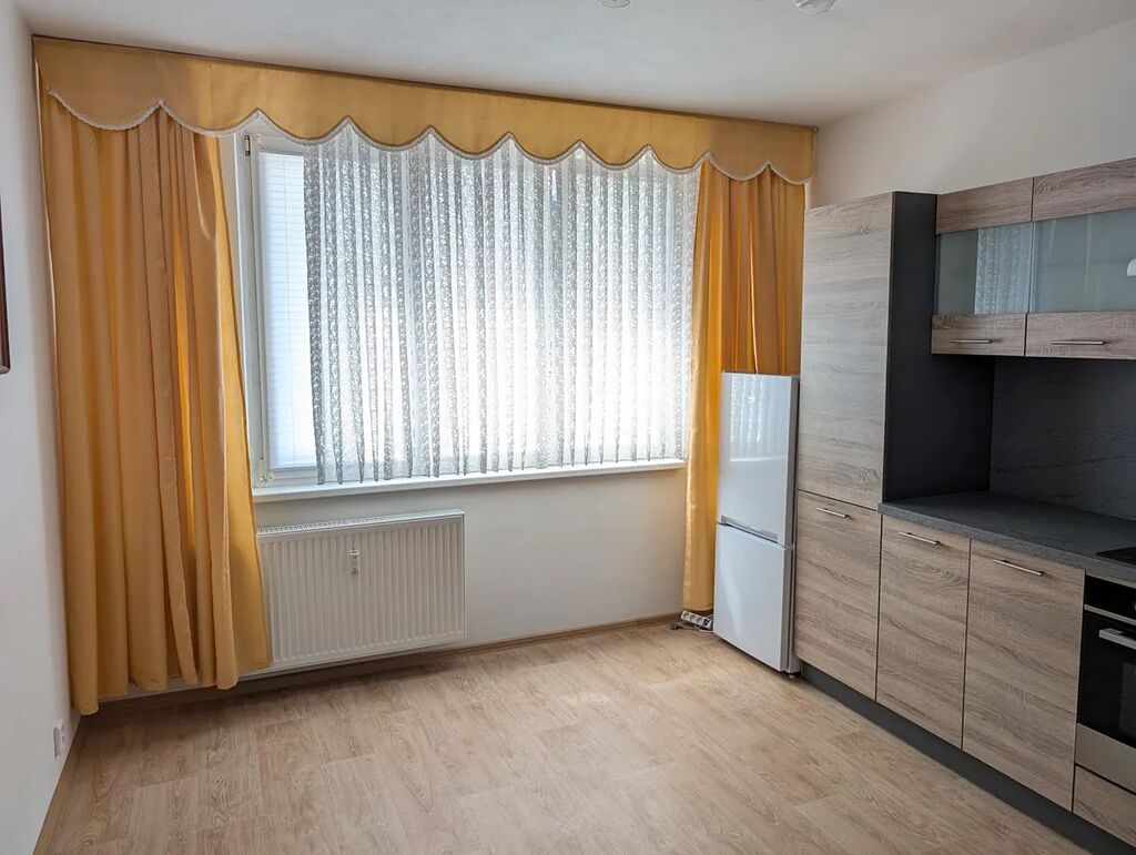 Byt prošel rekonstrukcí a nabízí čisté a klidné bydlení s výhledem do zeleně. Interiér tvoří obytný prostor s kuchyňským koutem, samostatná ložnice, koupelna s toaletou a předsíň. Kuchyňská linka je vybavena sklokeramickou deskou, troubou, mikrovlnnou troubou, digestoří a lednicí. Byt se pronajímá částečně vybavený součástí je postel a skříň.