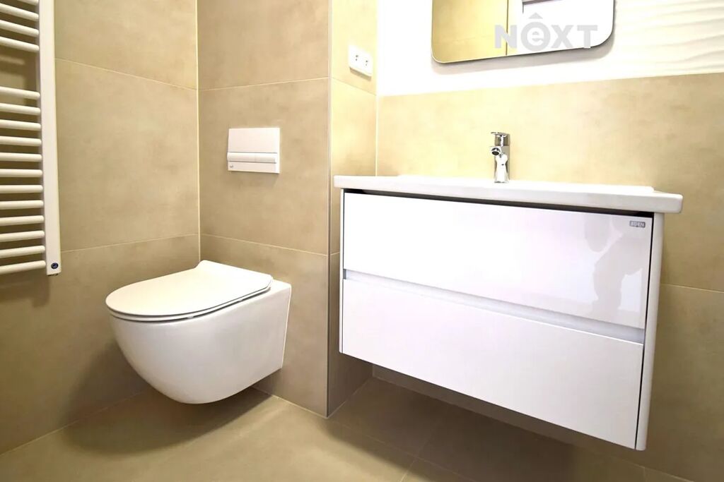 Bydlete v luxusu, přitom bez zatížení hypotékou či půjčkou. Exkluzivně nabízíme k pronájmu částečně vybavený byt 2+kk s užitnou plochou 34,4m2 ve 3. NP v Břeclavi, který je součástí bytového domu „Rezidence Břetislavova Břeclav“ vybaveného výtahem. Součástí vybavení je kuchyňská linka s elektrospotřebiči značky Whirpool: lednice s mrazákem, pečící trouba, mikrovlnná trouba, indukční varná deska, myčka a digestoř. Velká terasa je přístupná jak z obývací části bytu, tak z ložnice, přes HS portál. Všechna okna jsou opatřena elektricky ovládanými venkovními žaluziemi, klimatizace je řešena systémem Sinclair. Ke stavbě stěn a příček byly využity dokonalé protihlukové materiály. K bytu patří uzamykatelná sklepní kóje v suterénu a je možné si připlatit parkovací stání v garáži. Byt je naproti vlakového i autobusového nádraží a do Brna je možné přijet za 35 minut. Nájem činí 15.100,-Kč/měs., zálohy na vodu a služby jsou 900,-Kč/měs. Elektřina se u dodavatele elektřiny převádí na nájemníka. Před převzetím se skládá vratná kauce 30.200,-Kč a jeden nájem předem. Možnost nastěhování od 1.10.2025. Pro komunikaci uvádějte evidenční číslo zakázky N114439.