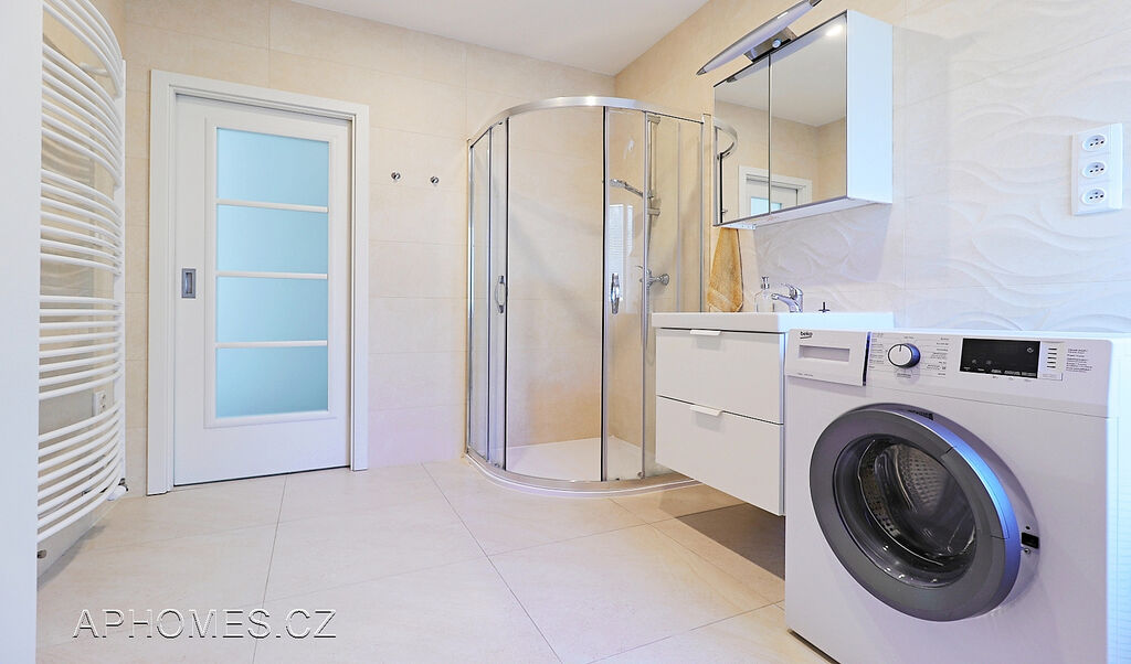 Byt je velmi je hezky řešený, ve vysokém standardu provedený. Je situován ve druhém nadzemním podlaží. Člení se na vstupní předsíň, chodbu s komodou koupelnu se sprchovým koutem, ložnici, obývací místnost s kuchyňskou linkou, prostornou komoru. Součástí vybavení je moderní kuchyňská linka, sklokeramická varná deska, vestavěná trouba, digestoř, mikrovlnná trouba, lednice s mrazákem, myčka nádobí.